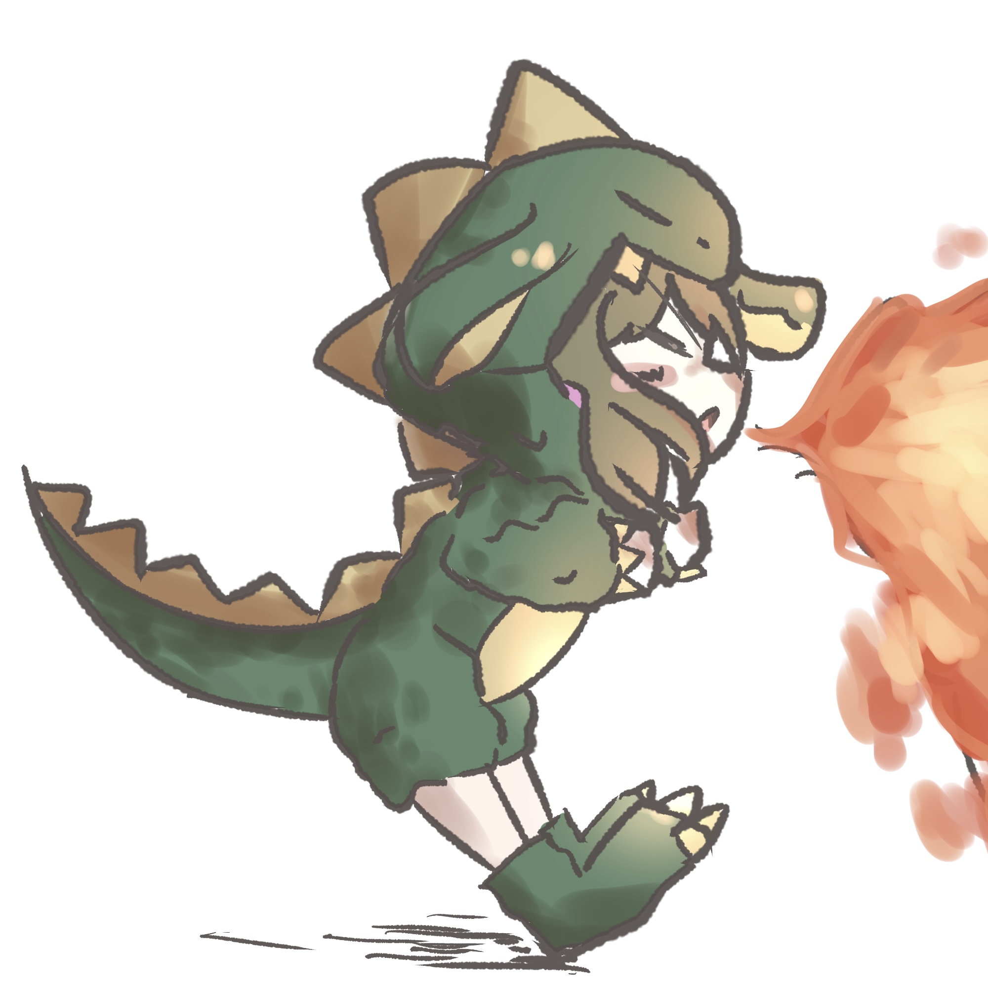 1girl animal_costume breath_weapon breathing_fire closed_eyes commentary_request dragon_costume dragon_tail fire from_side green_hair highres idolmaster idolmaster_shiny_colors nanakusa_nichika official_alternate_costume paw_shoes rutomiartdayo solo tail