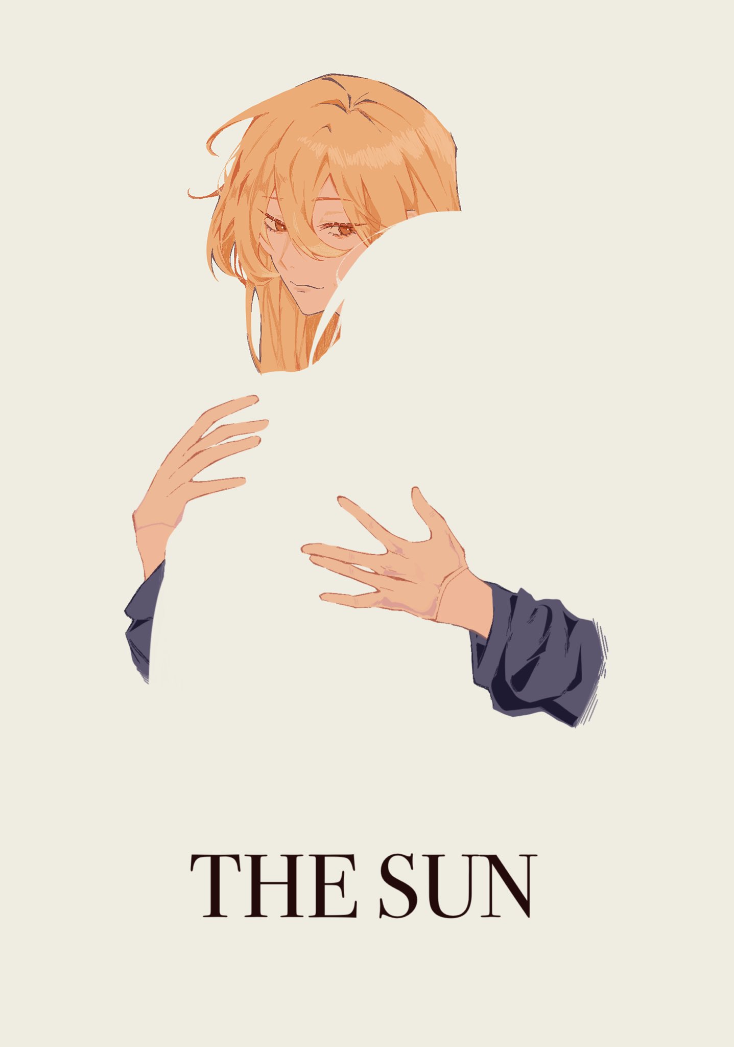 2girls blending blonde_hair closed_mouth commentary english_text gloves grey_background highres hug long_hair long_sleeves multiple_girls red_eyes reverse:1999 simple_background sy_no tennant_(reverse:1999) upper_body
