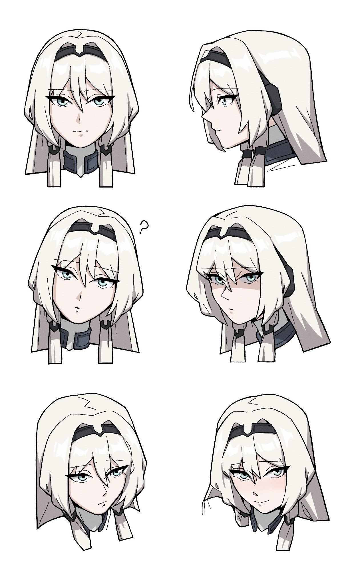 1girl ? an-94_(girls'_frontline) aqua_eyes black_hairband blush emile_aoi expressionless from_side girls'_frontline hairband highres long_hair looking_at_viewer multiple_views partially_shaded_face portrait smile straight-on white_background white_hair
