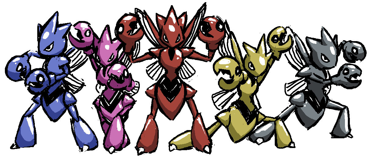 drawfag gen_2_pokemon insect_wings looking_at_viewer nintendo no_humans parody pincers pokemon pokemon_(creature) power_rangers scizor shiny_skin simple_background standing super_sentai tagme white_background wings