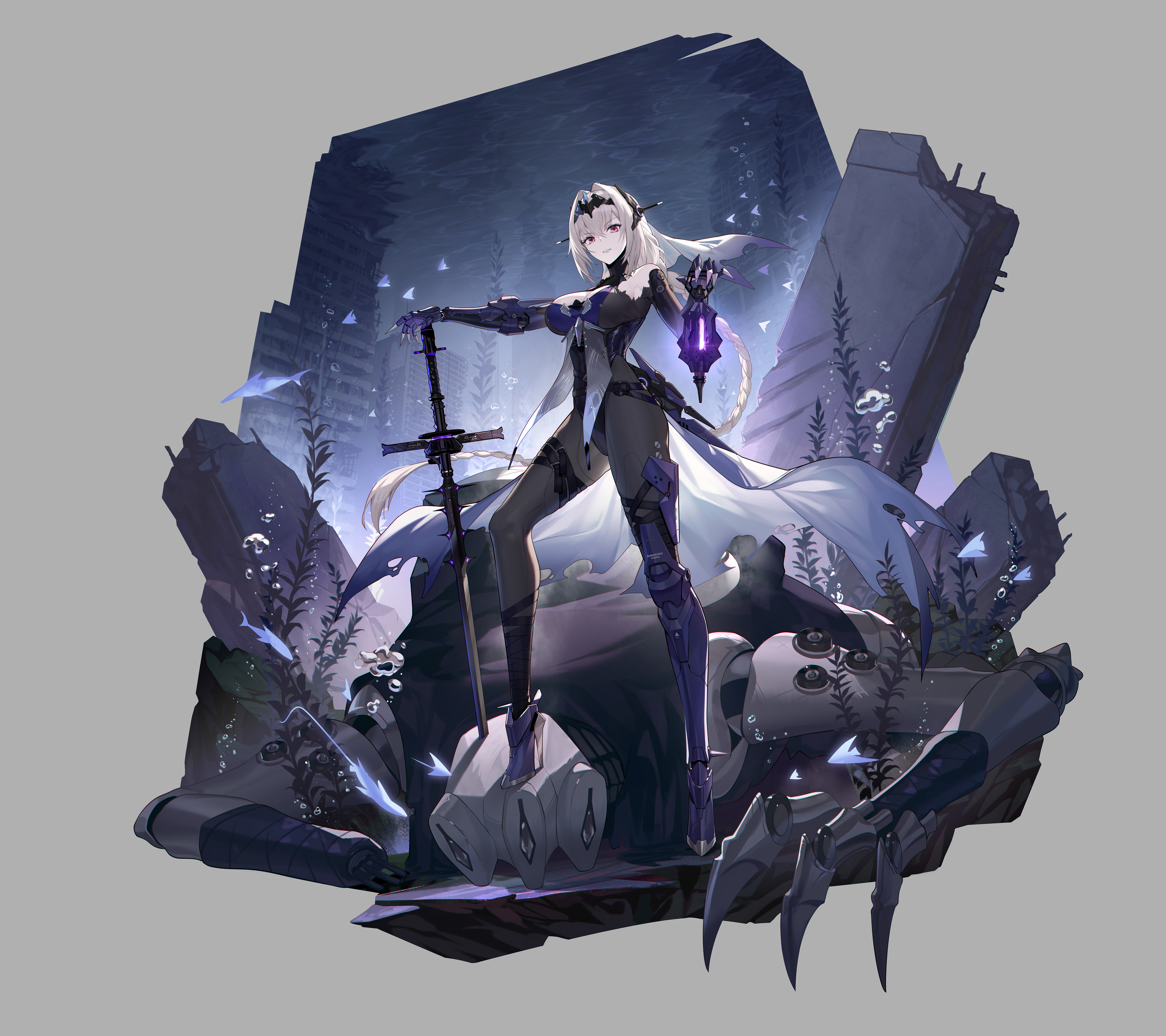 1girl absurdres android bianca:_stigmata_(pgr) bianca_(pgr) breasts cc_xiaotintin high_heels highres holding holding_weapon image_sample lantern large_breasts looking_at_viewer pixiv_sample punishing:_gray_raven solo sword thigh_strap underwater weapon
