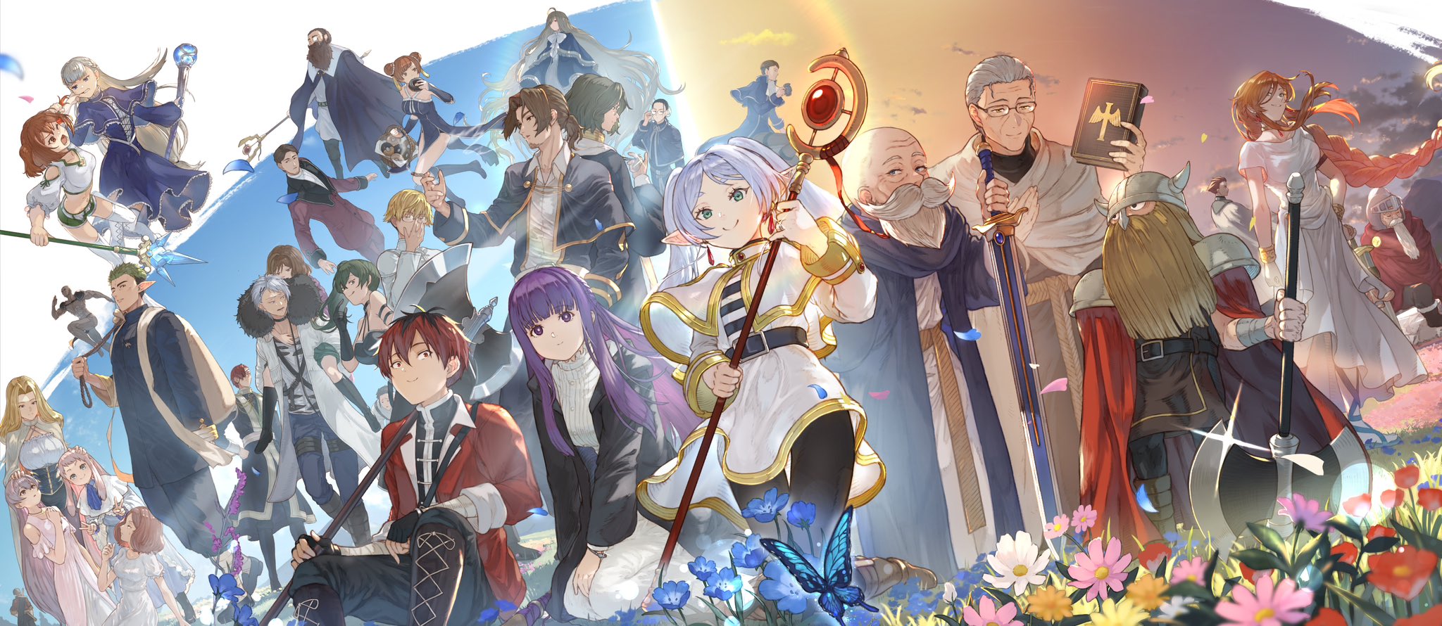 6+boys 6+girls absurdly_long_hair adjusting_eyewear ahoge arm_behind_back arm_up arms_up axe back-to-back backpack bag bald basket battle_axe beard belt black_belt black_coat black_dress black_gloves black_hair black_robe blonde_hair blue_butterfly blue_capelet blue_cloak blue_dress blue_scarf book braid braided_ponytail brothers brown_hair bug butterfly cape capelet carrying carrying_over_shoulder cheek_pinching child chocolate_donut cigarette clenched_hand cloak closed_eyes clothing_cutout coat commentary_request day denken_(sousou_no_frieren) donut double_bun double_v dress dutch_angle dwarf eating edel_(sousou_no_frieren) ehre_(sousou_no_frieren) eisen_(sousou_no_frieren) elf eyepatch facial_hair fake_horns falling_petals falsch_(sousou_no_frieren) fern_(sousou_no_frieren) field fighting fingerless_gloves flamme_(sousou_no_frieren) floating floating_hair flower flower_field flying food formal_clothes frieren fur-trimmed_jacket fur_trim genau_(sousou_no_frieren) glasses glint gloves golem gorilla_(sousou_no_frieren) grabbing_another's_hair green_eyes green_hair grey_coat grey_hair hair_between_eyes hair_bun hair_ornament half_updo hand_on_another's_head hand_up hands_up heart heiter helmet highres himmel_(sousou_no_frieren) holding holding_another's_hair holding_axe holding_basket holding_book holding_cigarette holding_donut holding_food holding_polearm holding_sword holding_weapon horned_helmet horns insect jacket kanne_(sousou_no_frieren) kneeling kraft_(sousou_no_frieren) land_(sousou_no_frieren) lange_(sousou_no_frieren) laufen_(sousou_no_frieren) lawine_(sousou_no_frieren) light_brown_eyes light_brown_hair long_beard long_hair lying mage_staff methode_(sousou_no_frieren) monocle multiple_boys multiple_girls mustache old old_man on_ground on_side one_eye_closed orange_hair orden_(sousou_no_frieren) own_hands_together pantyhose parted_bangs partial_commentary petals piggyback pinching pink_hair planted planted_sword planted_weapon pointy_ears polearm ponytail profile purple_eyes purple_hair red_cloak red_hair red_jacket richter_(sousou_no_frieren) robe sand sash scarf scharf_(sousou_no_frieren) sein's_brother_(sousou_no_frieren) sein_(sousou_no_frieren) sense_(sousou_no_frieren) shoulder_cutout siblings single_braid sitting sleeping sleeping_upright smile smoking smug sousou_no_frieren sparkle staff stark_(sousou_no_frieren) stoltz_(sousou_no_frieren) straight_hair suit sword sword_village_chief_(sousou_no_frieren) tassel tassel_hair_ornament thick_beard twilight twintails ubel_(sousou_no_frieren) v ve_0ekaki very_long_hair voll_(sousou_no_frieren) weapon white_cape white_capelet white_cloak white_coat white_dress white_hair winter_clothes wirbel_(sousou_no_frieren)