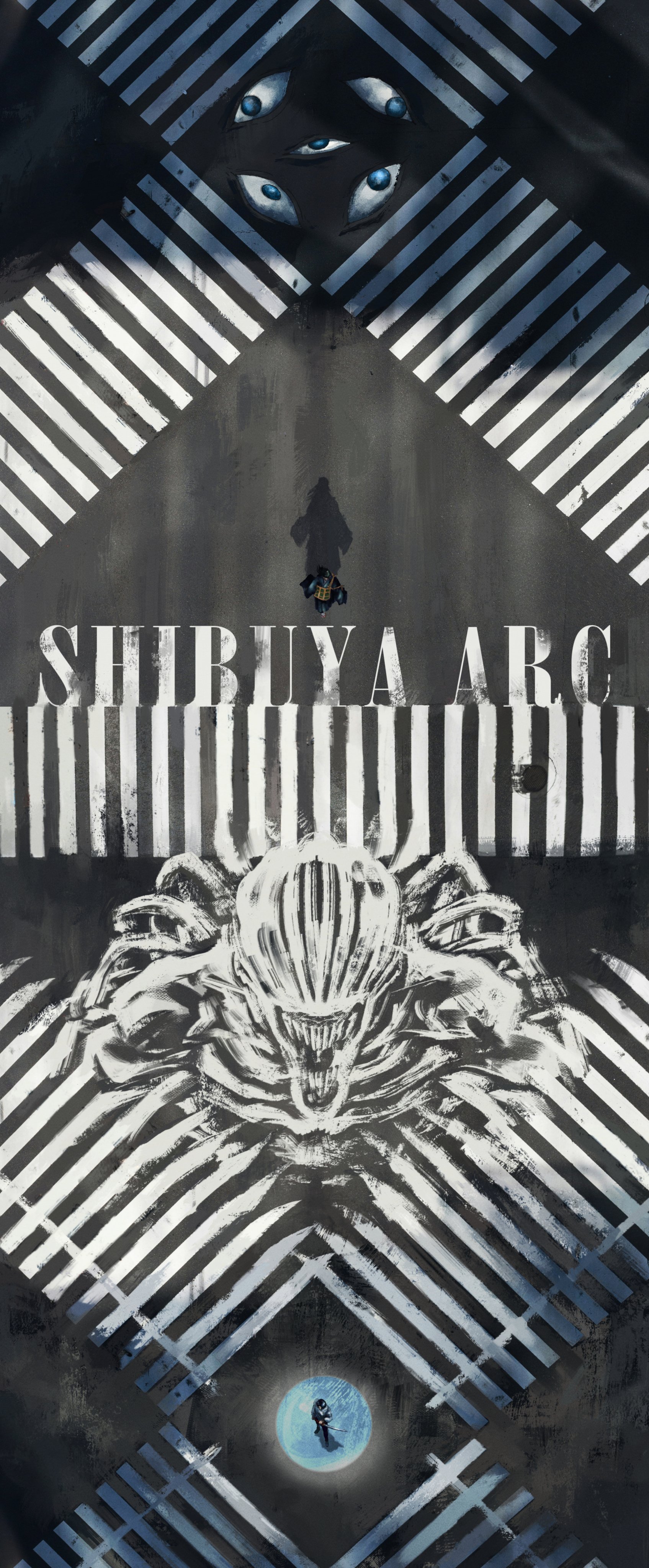 2boys absurdly_wide_shot absurdres character_request city crosswalk english_text geto_suguru geto_suguru_(kenjaku) highres jujutsu_kaisen key2_0209 male_focus multiple_boys outdoors prison_realm_(jujutsu_kaisen) road standing street walking