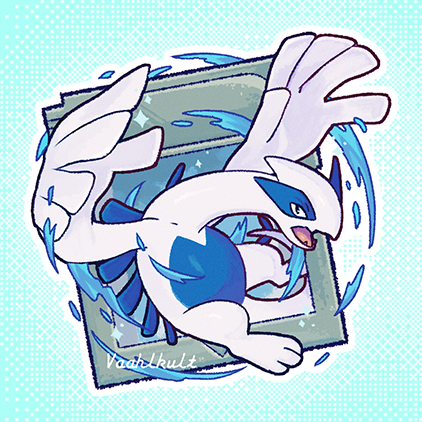 artist_name black_eyes blue_background colored_skin commentary fangs gen_2_pokemon legendary_pokemon lowres lugia nintendo no_humans open_mouth pokemon pokemon_(creature) skin_fangs twitter_username vaahlkult water white_skin wings
