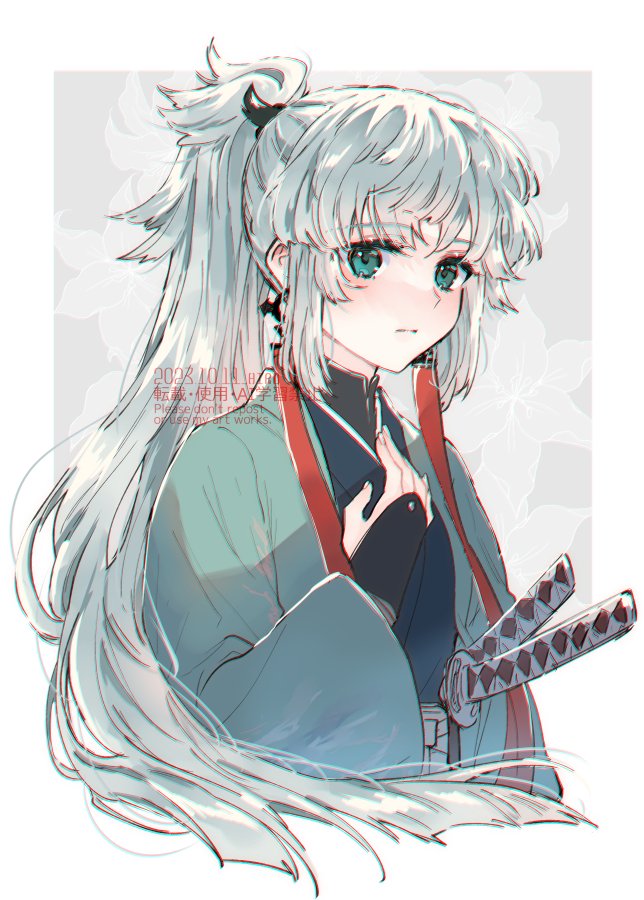 &{ID:9727982 CreatedAt:Thu Mar 07 23:15:05 -0600 2024 Score:2 Width:644 Height:900 MD5:c8ea06809b4e4f3600bcc09de8783543 Directory:c8/ea Image:c8ea06809b4e4f3600bcc09de8783543.jpg Rating:general Source:https://twitter.com/aoiro_hiro/status/1711936894509126026 Change:1709874905 Owner:danbooru CreatorID:6498 ParentID:0 Sample:0 PreviewHeight:350 PreviewWidth:250 Tags:1girl aoiro_hiro aqua_eyes border closed_mouth cropped_torso earrings fate/samurai_remnant fate_(series) hand_on_own_chest haori japanese_clothes jewelry kimono long_hair long_sleeves looking_at_viewer ponytail simple_background solo sword upper_body weapon white_border white_hair yui_shousetsu_(fate) Title: HasNotes:false HasComments:false FileURL:https://img2.gelbooru.com/images/c8/ea/c8ea06809b4e4f3600bcc09de8783543.jpg PreviewURL:https://gelbooru.com/thumbnails/c8/ea/thumbnail_c8ea06809b4e4f3600bcc09de8783543.jpg SampleURL: SampleHeight:0 SampleWidth:0 Status:active PostLocked:0 HasChildren:false IsVideo:false DisplayDate:07.03.2024 23:15}