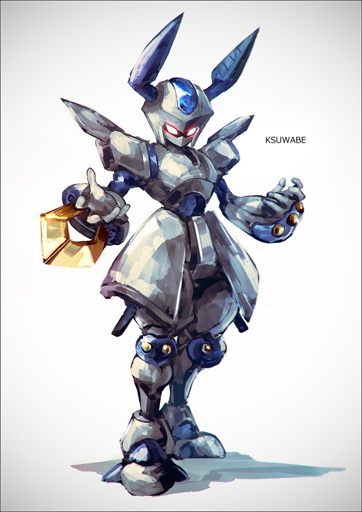 glowing glowing_eyes medarot medarot_(robot) pincers red_eyes robot rokusho_(medarot) shadow