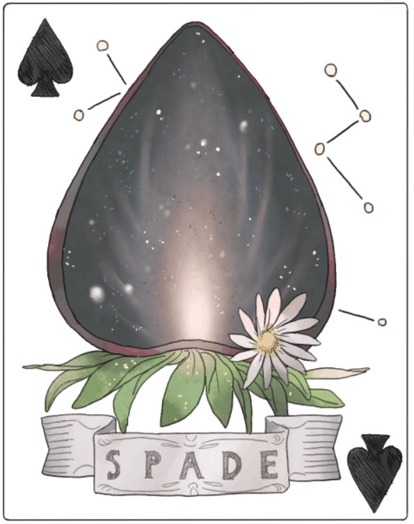 ace_(playing_card) ace_of_spades banner bity3155660241 card card_(medium) chinese_commentary commentary_request constellation daisy_(flower) english_text flower food fruit fruit_focus leaf no_humans original playing_card playing_card_(medium) simple_background space spade_(shape) strawberry white_background white_flower