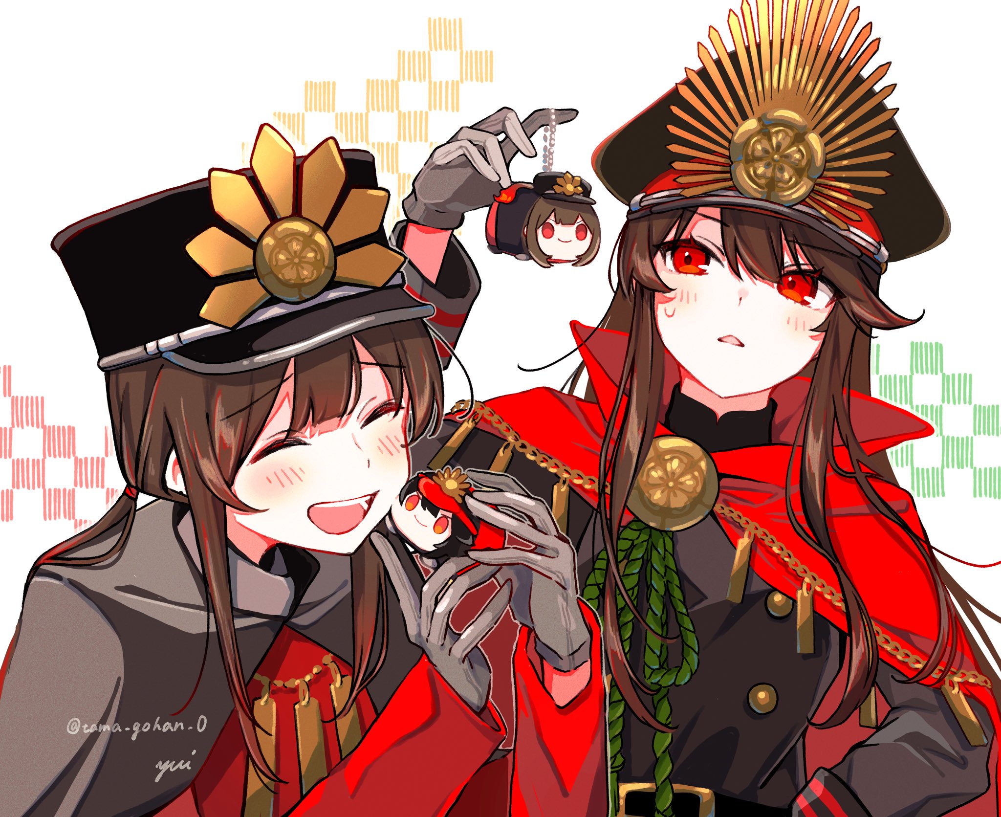 &{ID:9752983 CreatedAt:Wed Mar 13 10:00:41 -0500 2024 Score:7 Width:2048 Height:1671 MD5:d9fcc7c4bb7663223ecfdb1798527dcf Directory:d9/fc Image:d9fcc7c4bb7663223ecfdb1798527dcf.jpg Rating:general Source:https://twitter.com/tama_gohan_0/status/1767740955829174487 Change:1764517322 Owner:danbooru CreatorID:6498 ParentID:0 Sample:1 PreviewHeight:285 PreviewWidth:350 Tags:1boy 1girl belt belt_buckle black_cape black_hair brother_and_sister buckle buttons cape character_charm character_doll charm_(object) closed_eyes collared_cape crest doll family_crest fate/grand_order fate_(series) gloves grey_gloves hand_on_own_hip hat highres holding holding_doll holding_stuffed_toy koha-ace long_hair long_sleeves low_ponytail medallion military_hat oda_nobukatsu_(fate) oda_nobunaga_(fate) oda_nobunaga_(koha-ace) oda_uri open_mouth peaked_cap ponytail popped_collar red_cape red_eyes shako_cap siblings simple_background smile stuffed_animal stuffed_toy sweat white_background yui_(tamagohan) Title: HasNotes:false HasComments:false FileURL:https://img2.gelbooru.com/images/d9/fc/d9fcc7c4bb7663223ecfdb1798527dcf.jpg PreviewURL:https://gelbooru.com/thumbnails/d9/fc/thumbnail_d9fcc7c4bb7663223ecfdb1798527dcf.jpg SampleURL:https://img2.gelbooru.com/samples/d9/fc/sample_d9fcc7c4bb7663223ecfdb1798527dcf.jpg SampleHeight:694 SampleWidth:850 Status:active PostLocked:0 HasChildren:false IsVideo:false DisplayDate:13.03.2024 10:00}