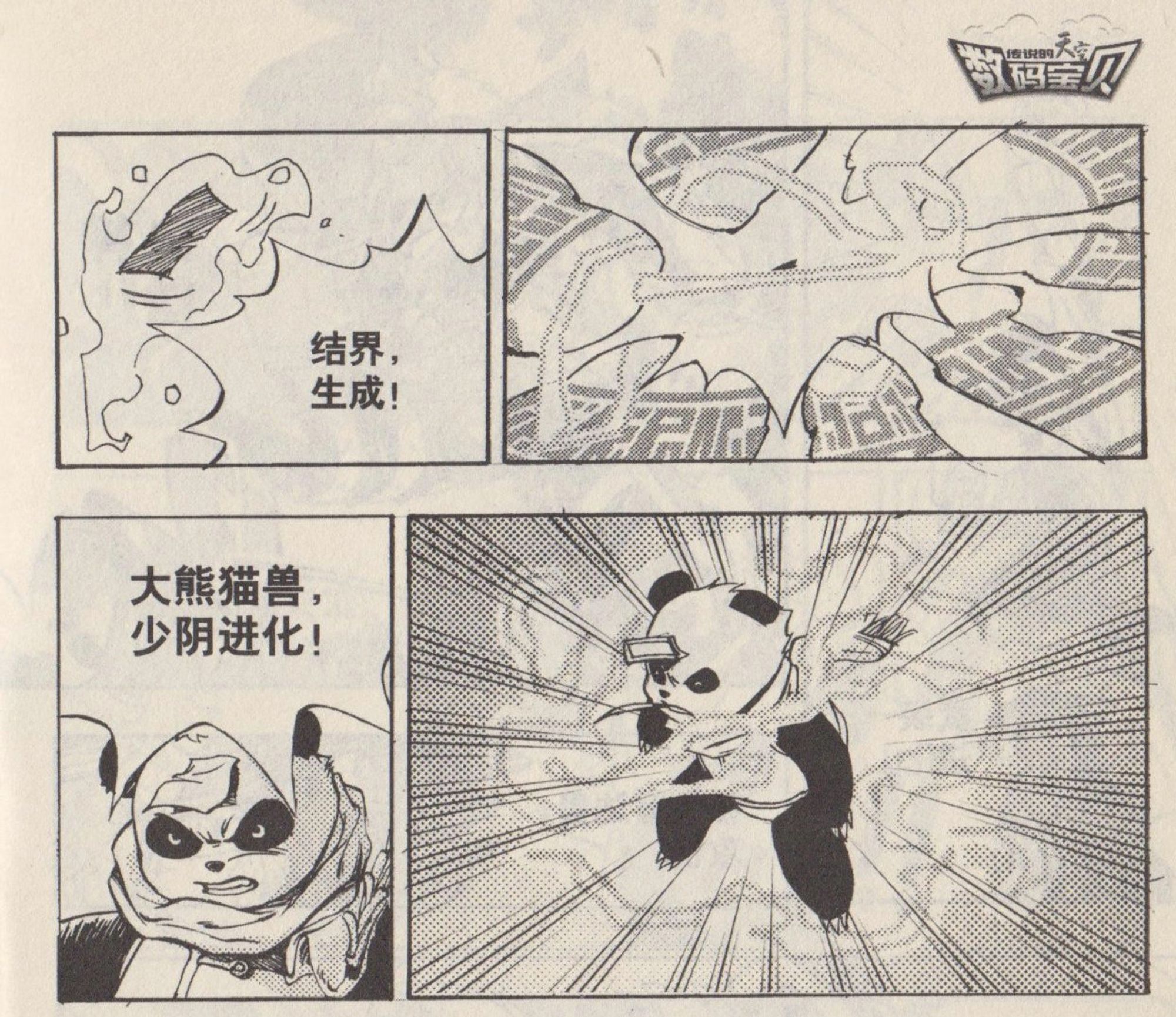 chinese_text digimon digimon_(creature) digimon_legendary_skies energy highres panda pandamon_(digimon_legendary_skies) translation_request
