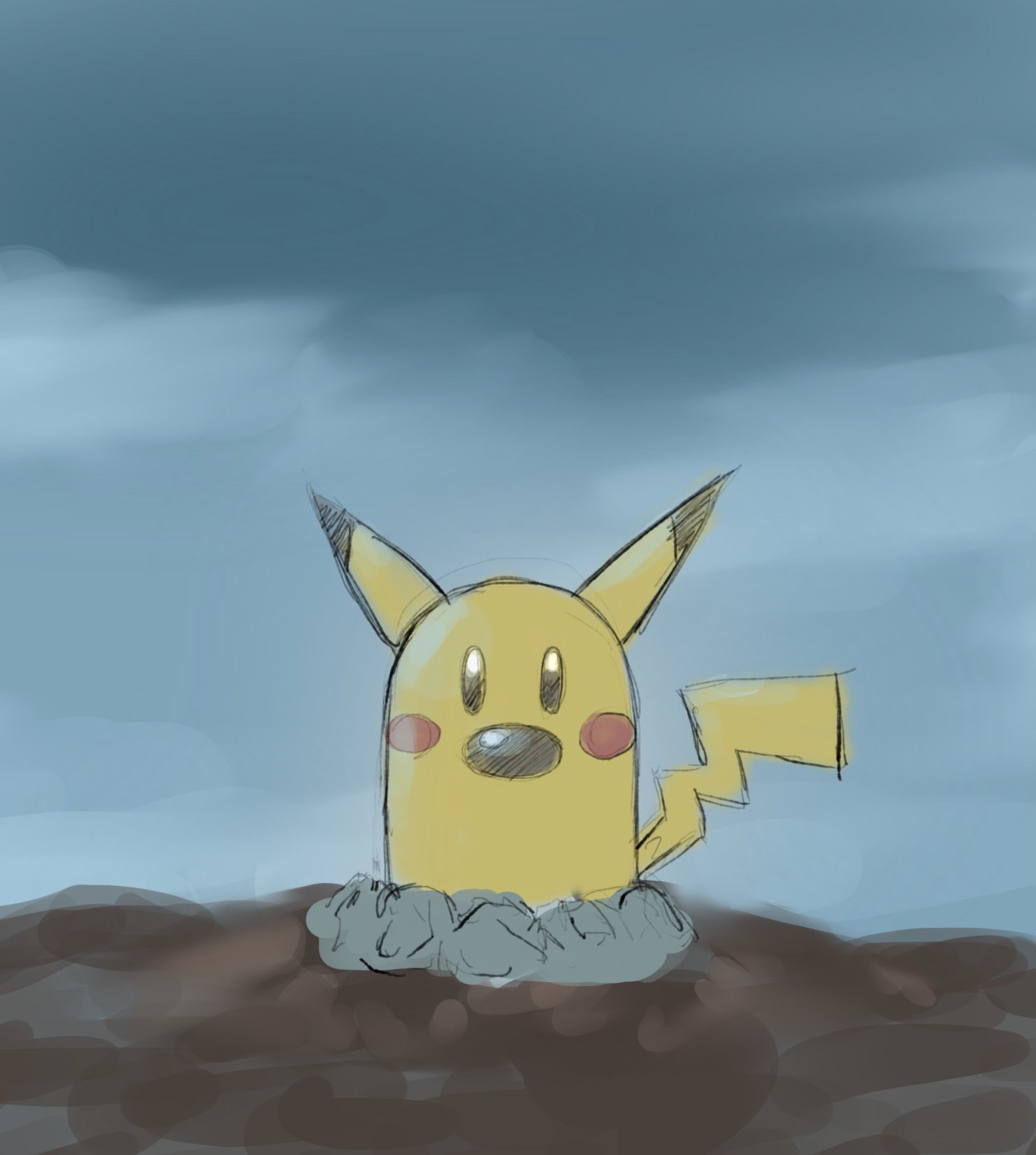 1other animal_focus cosplay diglett gen_1_pokemon highres looking_at_viewer makeup mas_square nintendo pikachu pikachu_(cosplay) pokemon pokemon_(creature) sky solo what