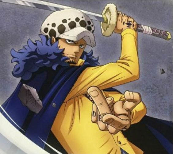 1boy black_eyes black_hair cloak collared_shirt facial_hair floating_rock fur_trim goatee hand_tattoo hat holding holding_sword holding_weapon katana one_piece ope_ope_no_mi shirt solo solo_focus sword tagme tattoo trafalgar_law weapon yellow_shirt
