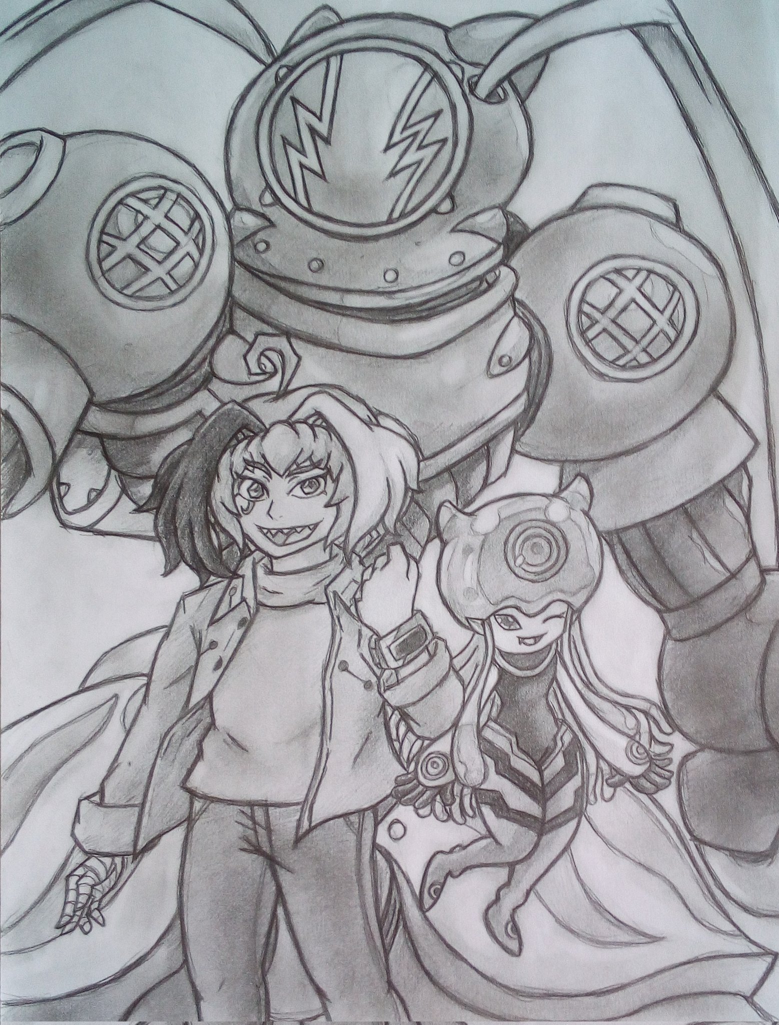 amphimon android armor digimon digimon_(creature) diving_suit full_armor gynoid highres jellyfish_girl jellymon mecha_girl monster_girl original robot_girl tentacle_hair tentacles