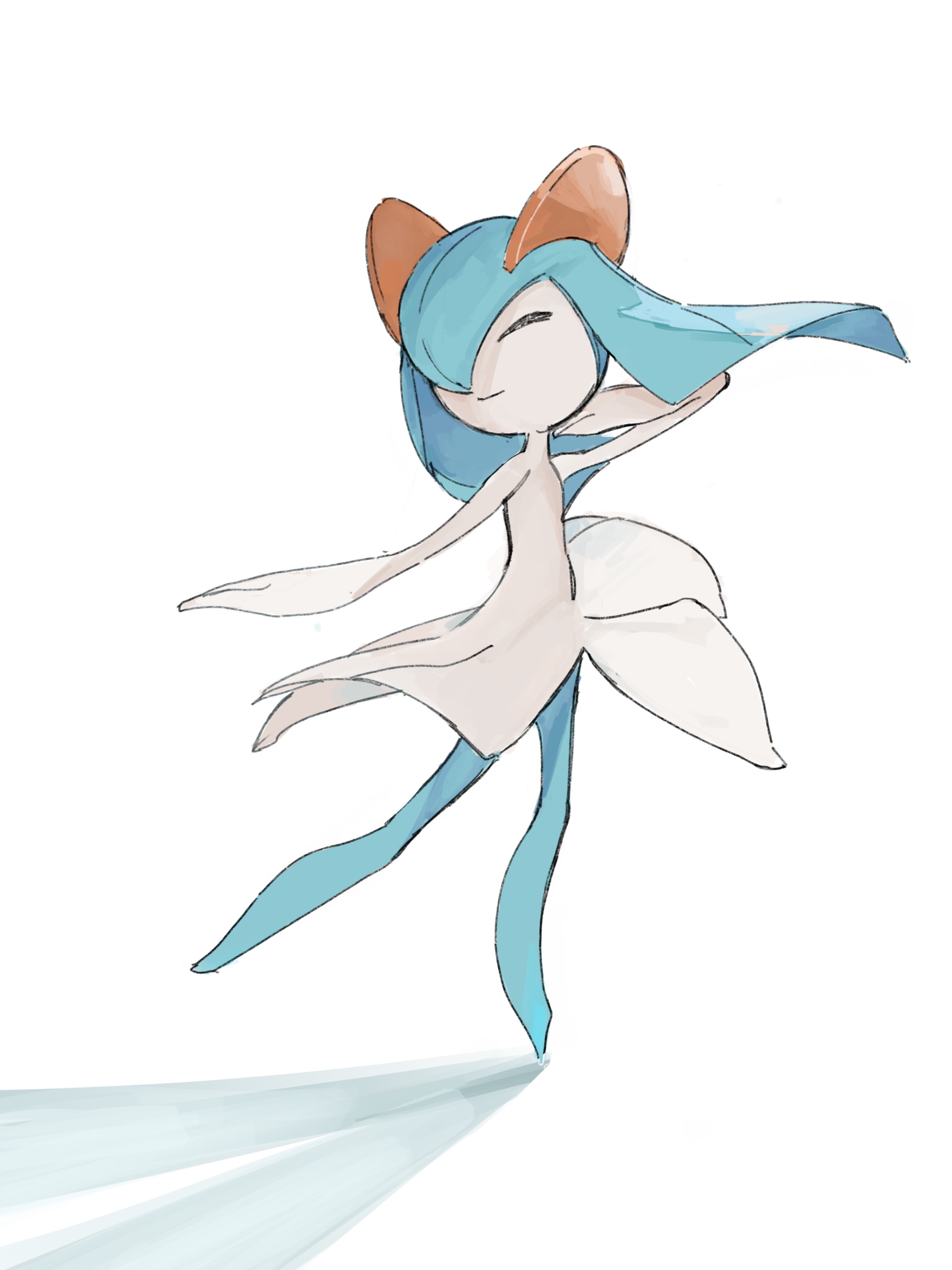 1girl ^_^ absurdres alternate_color arms_up backlighting blue_hair blue_skin child closed_eyes closed_mouth colored_skin dancing female_focus flat_chest full_body gen_3_pokemon happy highres kirlia leg_up medium_hair multicolored_skin nintendo outstretched_arm pokemon pokemon_(creature) shiny_pokemon sidelocks simple_background smile solo standing standing_on_one_leg taishinten two-tone_skin white_background white_skin