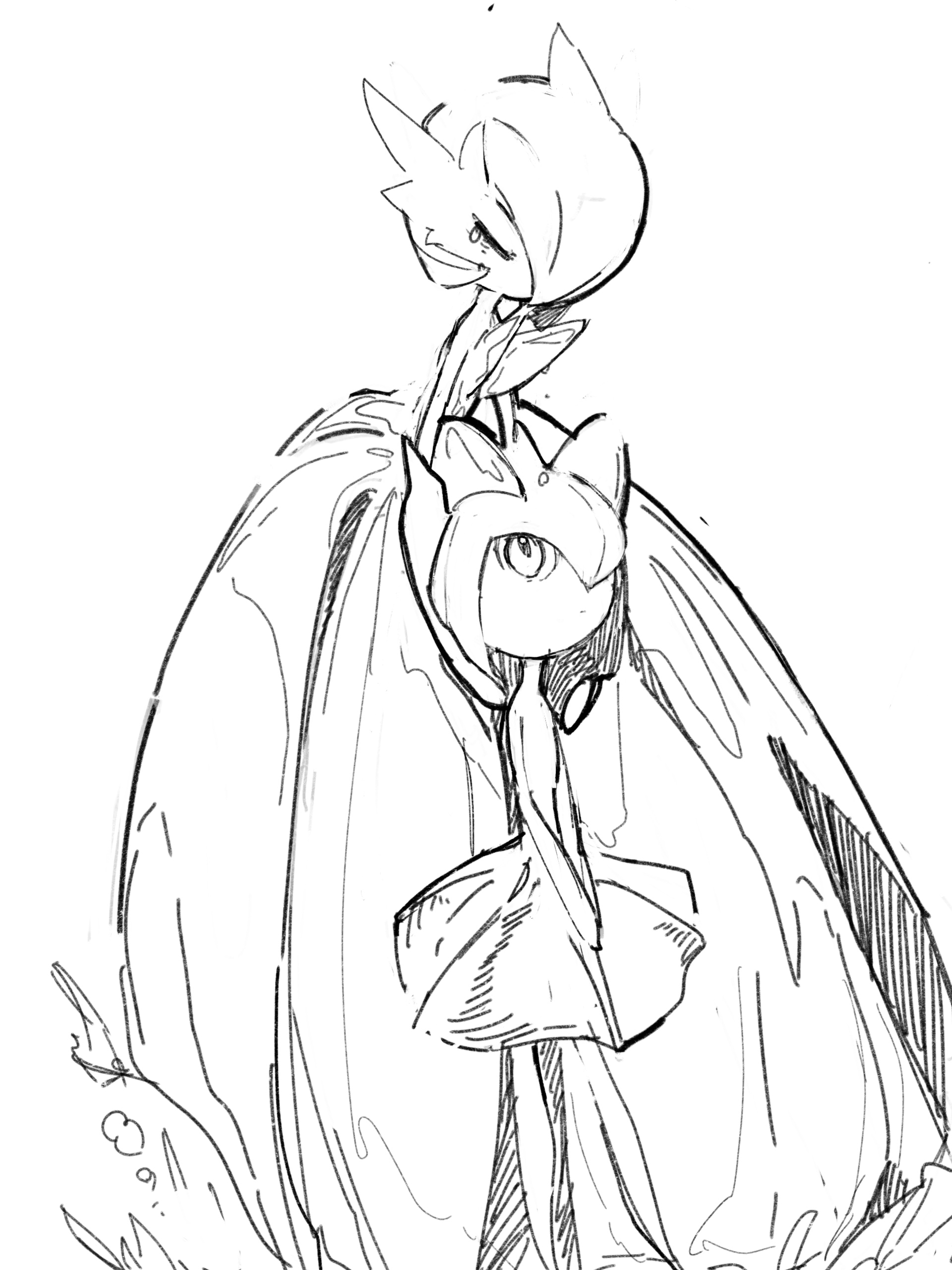 2girls absurdres bare_shoulders bob_cut child closed_eyes dress elbow_gloves female_focus flat_chest full_body gardevoir gen_3_pokemon gloves greyscale hair_over_one_eye highres kirlia long_dress medium_hair mega_gardevoir mega_pokemon monochrome mother_and_child mother_and_daughter multiple_girls nintendo one_eye_covered own_hands_together parent_and_child playing_with_another's_hair pokemon pokemon_(creature) short_hair sidelocks simple_background sketch standing strapless strapless_dress taishinten tears u_u v_arms white_background