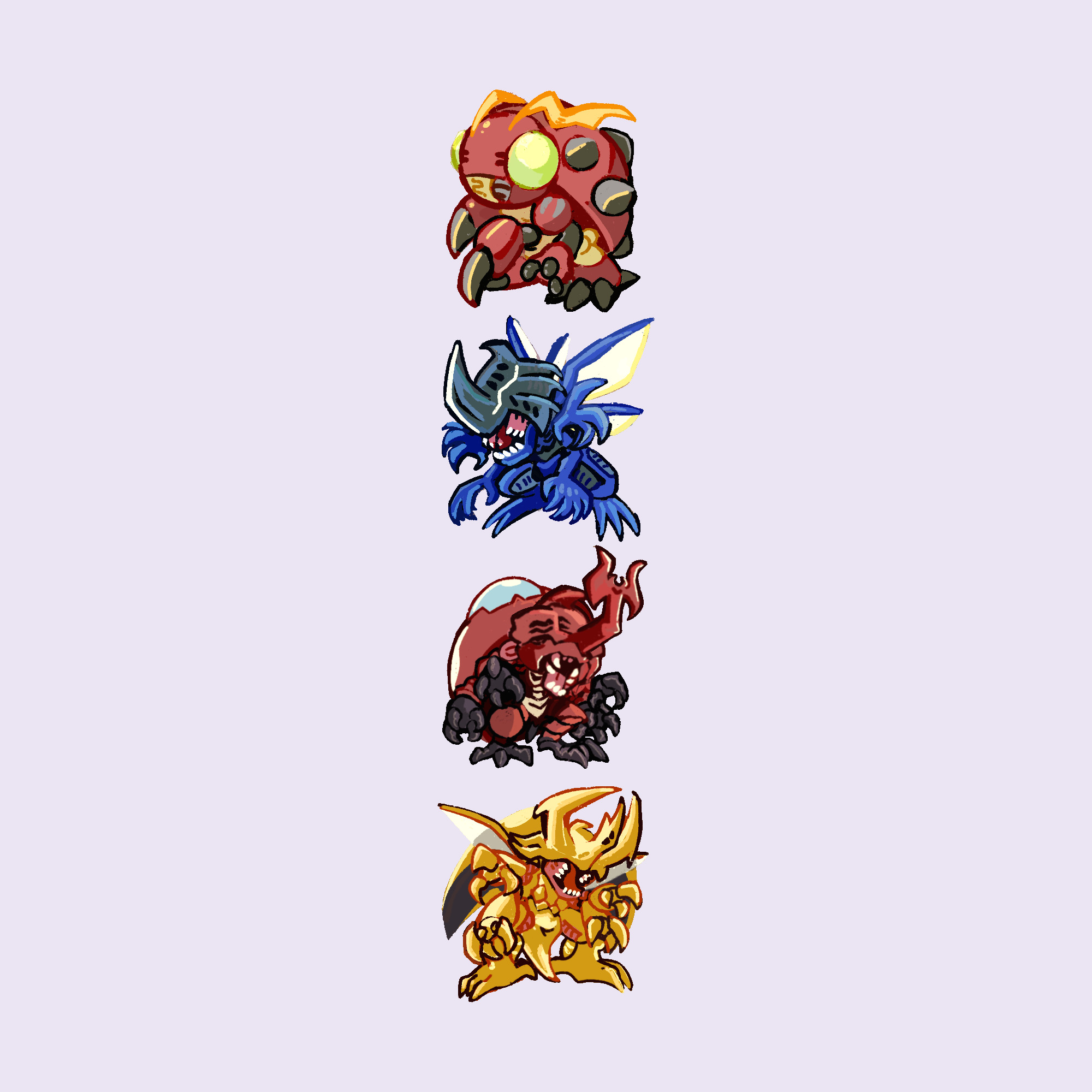 antennae atlurkabuterimon atlurkabuterimon_(red) bug claws digimon digimon_(creature) exoskeleton heraklekabuterimon highres horns kabuterimon rhinoceros_beetle sharp_teeth spikes teeth tentomon