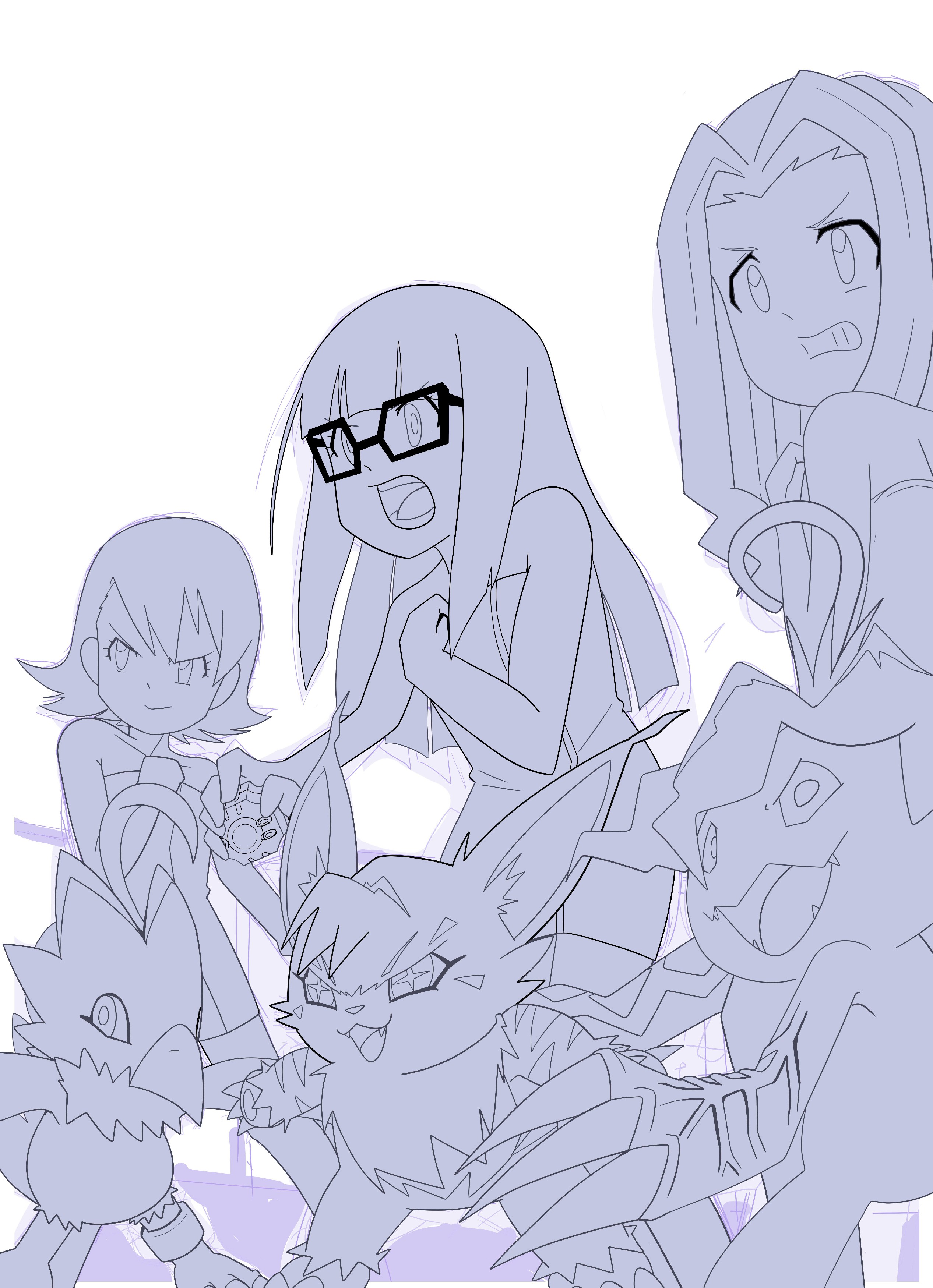 absurdres bird cat curry_lun digimon digimon_(creature) digimon_adventure_tri. highres meicoomon mochizuki_meiko open_mouth palmon piyomon sharp_teeth tachikawa_mimi takenouchi_sora teeth