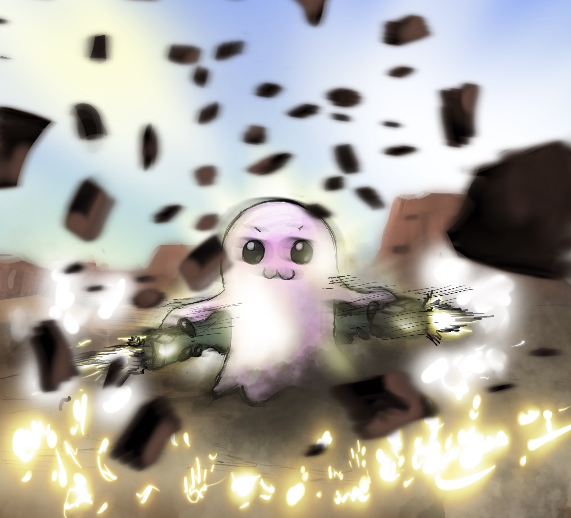 :3 black_eyes claws desert digimon digimon_(creature) highres mas_square mochimon parody pose_imitation sky solo