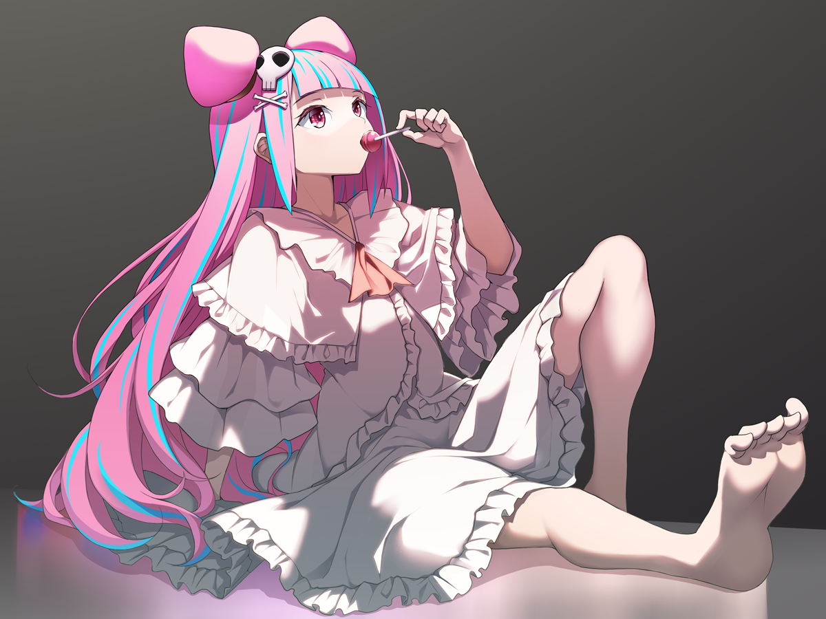 &{ID:9798548 CreatedAt:Fri Mar 22 21:15:18 -0500 2024 Score:4 Width:1200 Height:900 MD5:fca071958967f69e415312b88a208e94 Directory:fc/a0 Image:fca071958967f69e415312b88a208e94.png Rating:general Source:https://www.pixiv.net/artworks/117160001 Change:1711160118 Owner:danbooru CreatorID:6498 ParentID:0 Sample:1 PreviewHeight:262 PreviewWidth:350 Tags:1girl barefoot blue_hair bone_hair_ornament candy cartoon_bone commentary_request creek_(moon-sky) dress food frilled_dress frills grey_background hair_ornament hand_up holding holding_candy holding_food holding_lollipop knee_up lollipop long_hair multicolored_hair original pink_hair red_eyes short_sleeves sitting skull_and_crossbones skull_hair_ornament soles solo streaked_hair very_long_hair white_dress wide_sleeves Title: HasNotes:false HasComments:false FileURL:https://img2.gelbooru.com/images/fc/a0/fca071958967f69e415312b88a208e94.png PreviewURL:https://gelbooru.com/thumbnails/fc/a0/thumbnail_fca071958967f69e415312b88a208e94.jpg SampleURL:https://img2.gelbooru.com/samples/fc/a0/sample_fca071958967f69e415312b88a208e94.jpg SampleHeight:638 SampleWidth:850 Status:active PostLocked:0 HasChildren:false IsVideo:false DisplayDate:22.03.2024 21:15}