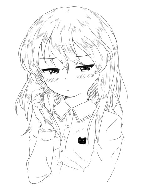 1girl blush embarrassed girls_und_panzer greyscale hair_down long_hair looking_to_the_side monochrome nekopantsu_(blt) pajamas shimada_arisu simple_background solo upper_body