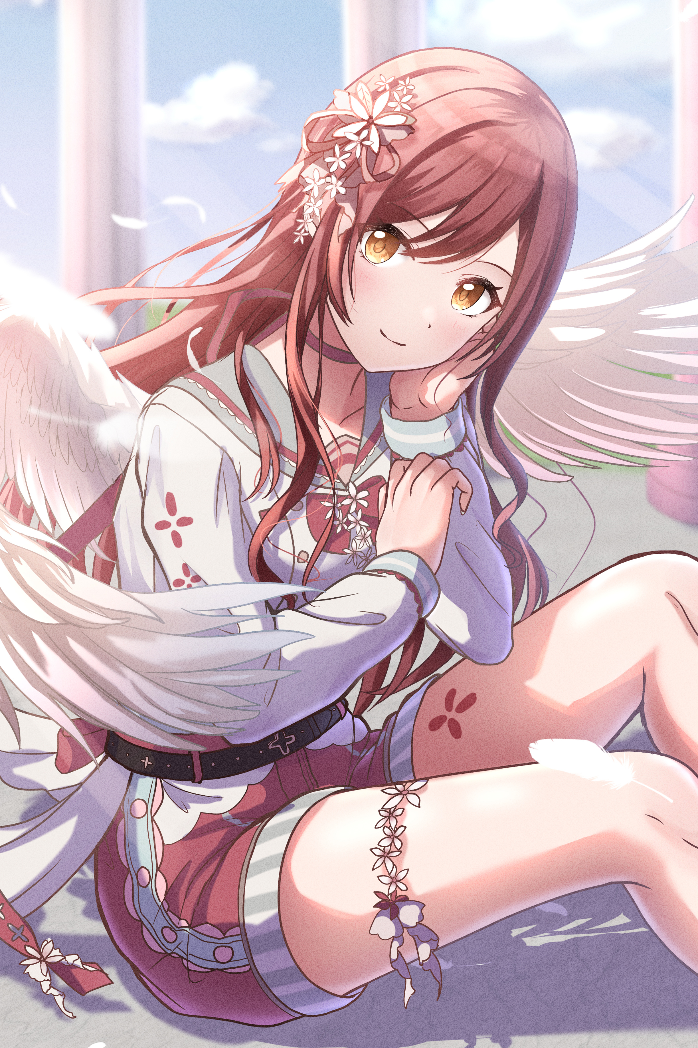 1girl absurdres brown_eyes brown_hair citrusmikan highres idolmaster idolmaster_shiny_colors long_hair looking_at_viewer osaki_amana smile solo wings