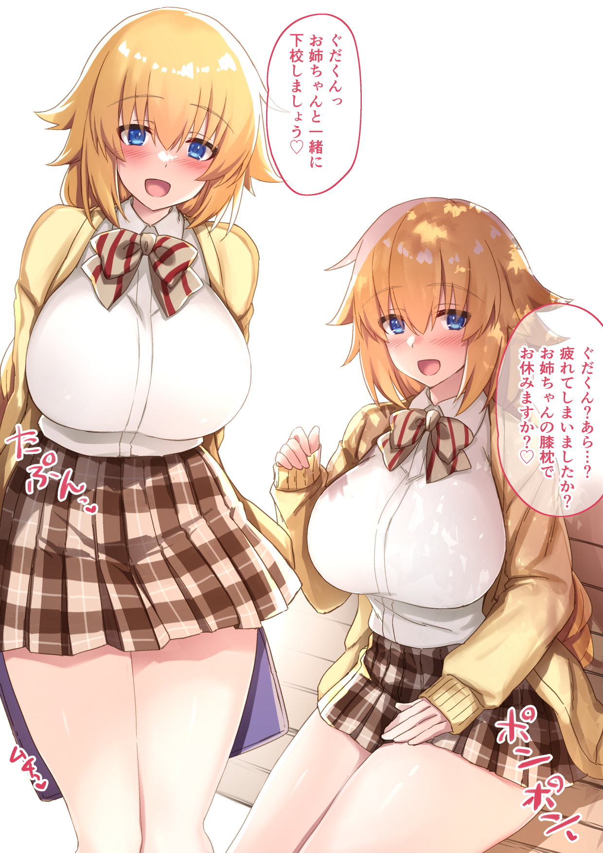1girl blonde_hair blue_eyes blush breasts fate/apocrypha fate/grand_order fate_(series) highres jeanne_d'arc_(an_encounter_in_spring)_(fate) jeanne_d'arc_(fate) large_breasts long_braid long_hair looking_at_viewer satou_(kuso-neet) school_uniform smile very_long_hair white_background