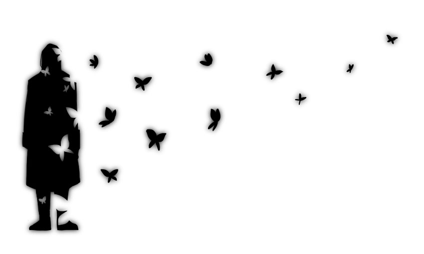 bug butterfly coat digimon digimon_adventure_02 insect long_hair monochrome oikawa_yukio sad