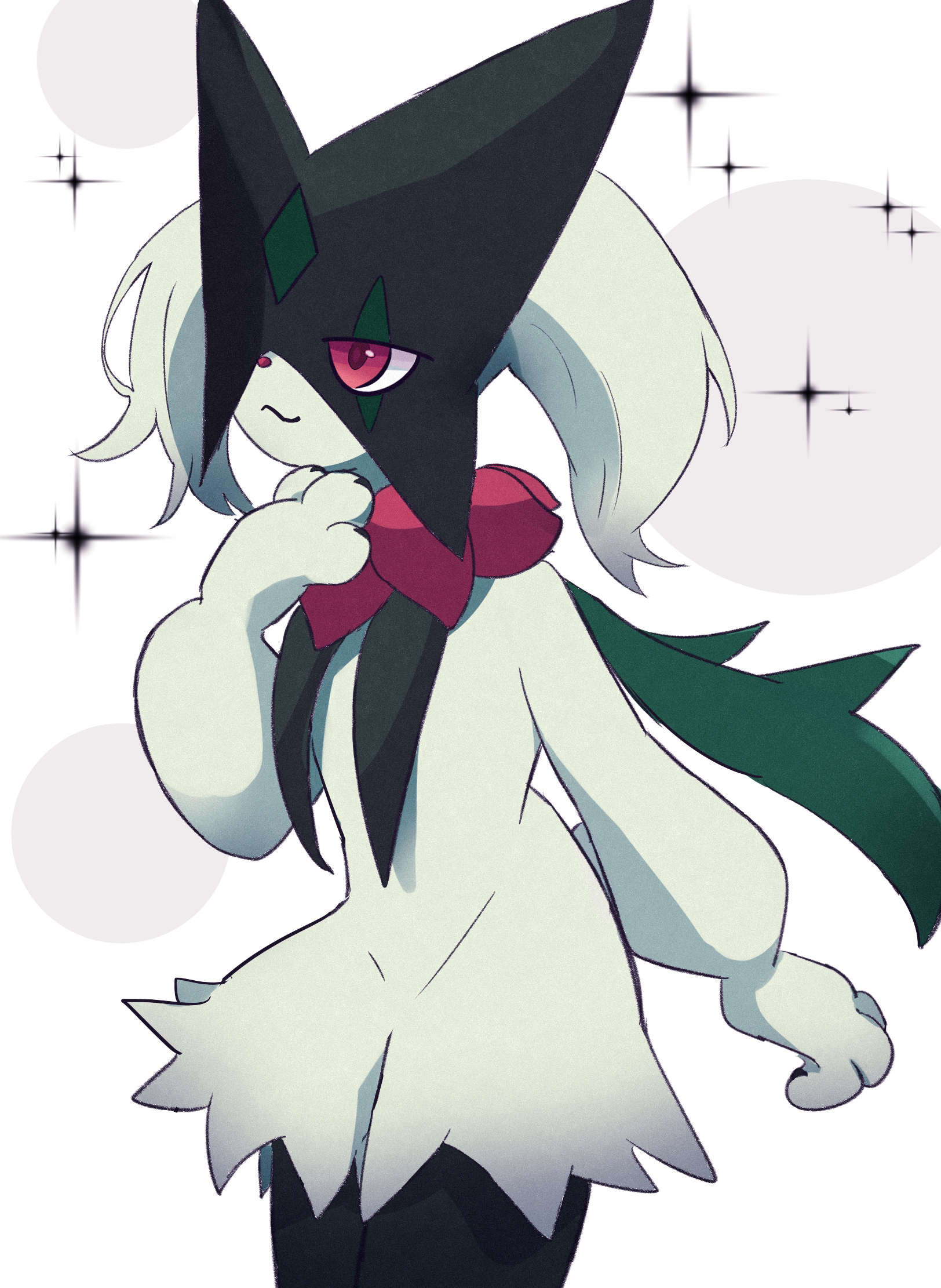 cape furry green_fur green_hair highres mask meowscarada nintendo pio_(piopio_poke) pokemon pokemon_(creature) simple_background smile solo white_background