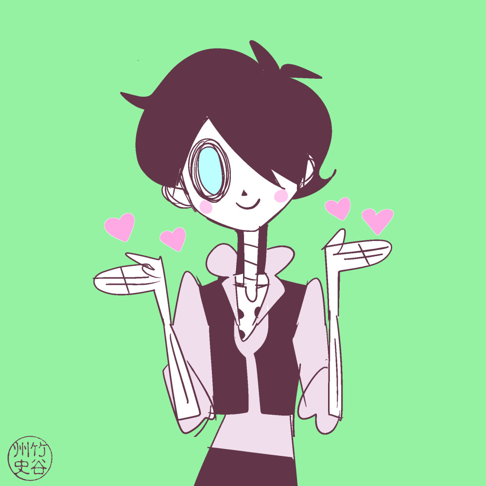 1boy bonzo_scalobania doodle green_background heart monster_boy simple_background skeleton smile syuji_takeya yasuraka_monsters