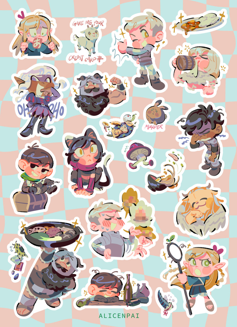 3girls 5boys afterimage alcohol alice_(alicenpai) awestruck beard beer biceps brown_hair chilchuck_tims deformed drinking drunk dungeon_meshi dwarf elf english_text evil_smile facial_hair fake_horns falin_touden falin_touden_(tallman) flexing goat helmet holding holding_staff horned_helmet horns izutsumi kabru laios_touden long_beard marcille_donato merchandise_available multiple_boys multiple_girls mustache ojou-sama_pose pointy_ears senshi_(dungeon_meshi) sleepy smile sparkle squeans staff strong thick_mustache thistle_(dungeon_meshi) thumbs_up treasure_chest very_long_beard walking_mushroom_(dungeon_meshi) wide-eyed winged_lion_(dungeon_meshi) wok