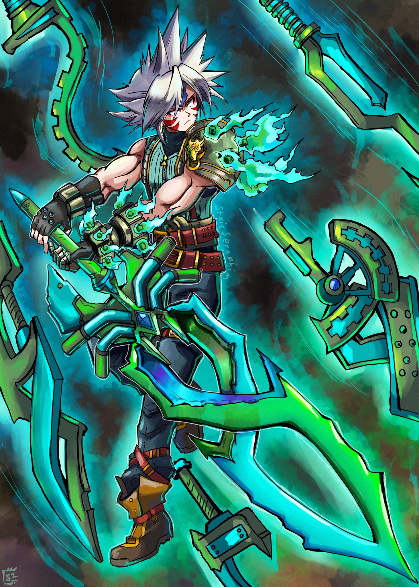 alternate_color alternate_costume alternate_eye_color alternate_hair_color alternate_weapon armor artist_logo aura belt blue_gem boots cloud_strife corruption crescent crossover dark_persona double_helix ear_piercing facial_tattoo fierce_deity final_fantasy final_fantasy_vii fingerless_gloves frown gem gloves glowing hal_laboratory highres holding holding_sword holding_weapon logo looking_to_the_side multiple_weapons muscular nintendo non-web_source pauldrons piercing possessed possession short_hair shoulder_armor single_pauldron spiked_hair square_enix stoic_seraphim super_smash_bros. sword tattoo the_legend_of_zelda the_legend_of_zelda:_majora's_mask triangle weapon white_hair wrist_guards zipper