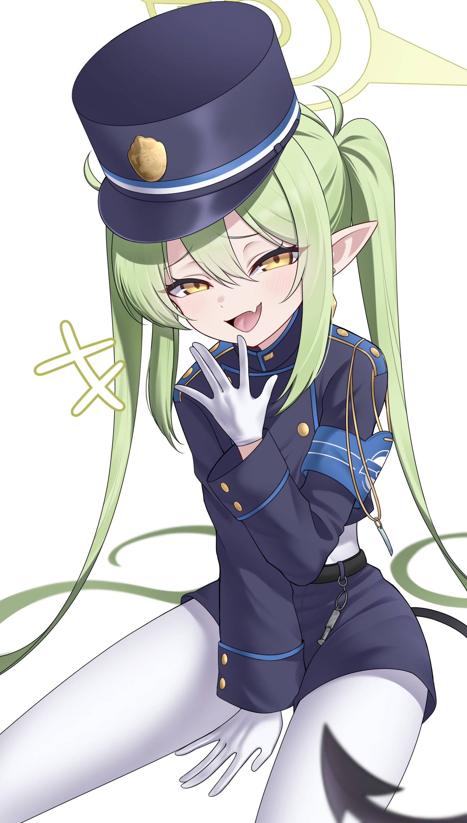 &{ID:9851304 CreatedAt:Tue Apr 02 14:45:18 -0500 2024 Score:13 Width:1603 Height:2824 MD5:3f434af206975970ae36e9f01ad6751d Directory:3f/43 Image:3f434af206975970ae36e9f01ad6751d.png Rating:general Source:https://www.pixiv.net/artworks/117498844 Change:1712087119 Owner:danbooru CreatorID:6498 ParentID:0 Sample:1 PreviewHeight:350 PreviewWidth:198 Tags:+++ 1girl :d absurdly_long_hair absurdres ahoge aoi_ryo arm_support armband belt black_belt black_tail blue_archive blue_armband blue_hat blue_jacket blue_shorts brown_pupils buttons commentary cowboy_shot cropped_jacket demon_tail earrings fang furrowed_brow gloves green_hair green_halo hair_between_eyes half-closed_eyes halo hand_to_own_mouth hand_up hat nozomi_(blue_archive) highres jacket jewelry laughing light_blush long_hair looking_at_viewer mesugaki open_mouth pantyhose peaked_cap pointy_ears shirt shorts sidelocks sitting skin_fang smile smug solo untranslatable_commentary tail twintails very_long_hair white_background white_gloves white_pantyhose white_shirt yellow_eyes Title: HasNotes:false HasComments:false FileURL:https://img2.gelbooru.com/images/3f/43/3f434af206975970ae36e9f01ad6751d.png PreviewURL:https://gelbooru.com/thumbnails/3f/43/thumbnail_3f434af206975970ae36e9f01ad6751d.jpg SampleURL:https://img2.gelbooru.com/samples/3f/43/sample_3f434af206975970ae36e9f01ad6751d.jpg SampleHeight:1497 SampleWidth:850 Status:active PostLocked:0 HasChildren:false IsVideo:false DisplayDate:02.04.2024 14:45}