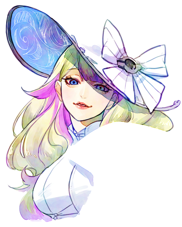 1girl blending blonde_hair blue_eyes breasts coat diabellze_the_original_sinkeeper dress duel_monster hat kalk large_breasts long_hair looking_at_viewer red_lips solo white_coat white_dress white_hat yu-gi-oh!