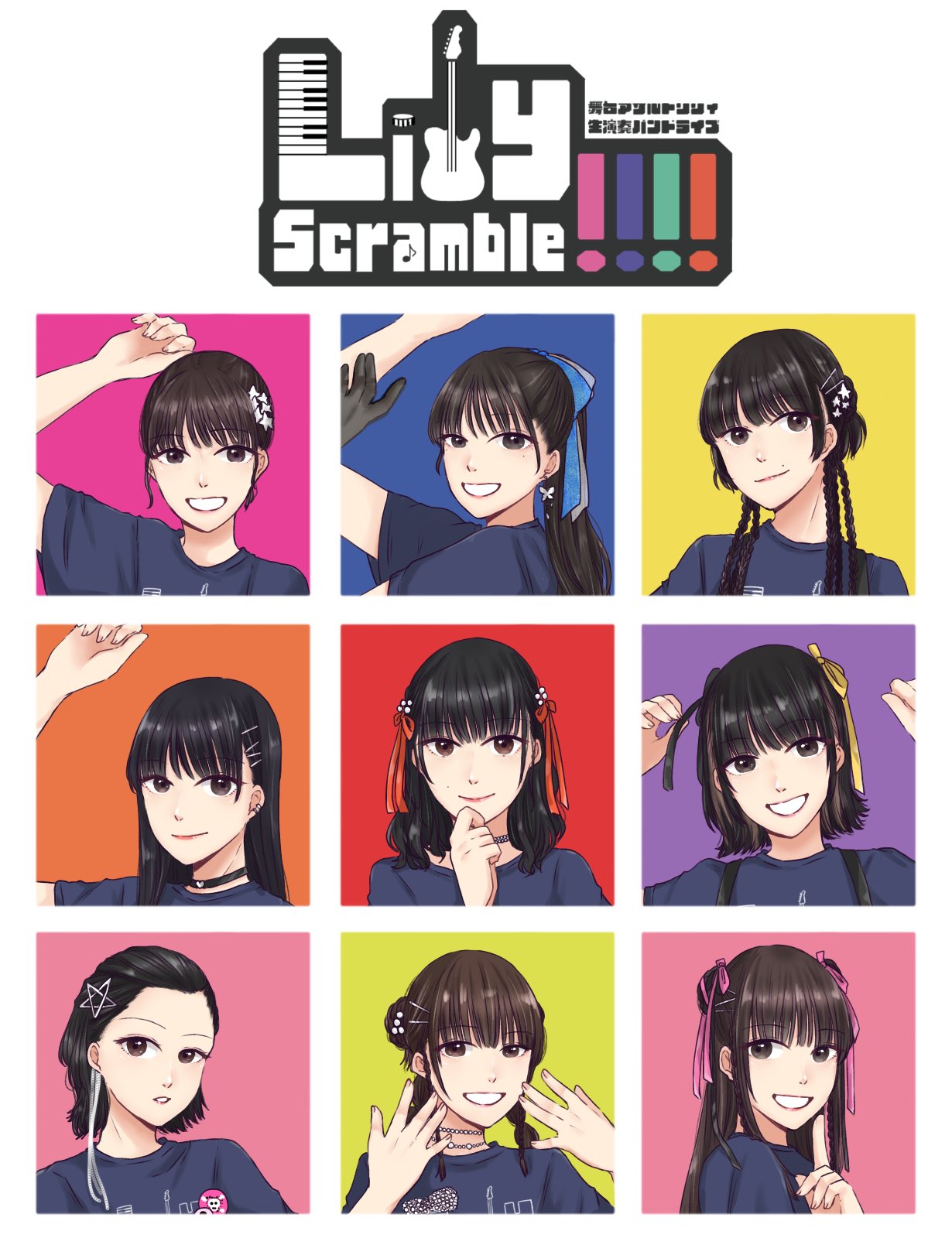6+girls :d actor actor_connection andou_chikana arm_up arms_up assault_lily awatsu_mai badge black_choker black_gloves black_ribbon black_shirt blue_background blue_bow bow braid brown_eyes brown_hair butterfly_earrings button_badge choker closed_mouth commentary_request copyright_name cosplay double_bun ear_piercing earrings funada_kiito funada_kiito_(cosplay) funada_ui funada_ui_(cosplay) gloves green_background grey_bow grin hair_bow hair_bun hair_ornament hair_ribbon hairclip hand_to_own_mouth hand_up hands_up hayashida_mahiro heart heart_choker highres hishida_haru hishida_haru_(cosplay) hoshiki_seena index_finger_raised ishii_haruna jewelry kawamura_yuzuriha kawamura_yuzuriha_(cosplay) logo long_hair looking_at_viewer looking_to_the_side medium_hair mole mole_above_mouth mole_under_eye multiple_braids multiple_girls necklace nigari_(ngari_0115) nomoto_sora open_mouth orange_background orange_ribbon parted_bangs parted_lips pearl_hair_ornament pearl_necklace piercing pink_background pink_ribbon ponytail print_shirt purple_background real_life ribbon saiba_mizuki saigou_kurena saigou_kurena_(cosplay) shiba_tomoshibi shiba_tomoshibi_(cosplay) shirt short_hair short_sleeves side_braids single_side_bun smile star_(symbol) star_hair_ornament suspenders takehisa_nakaba takehisa_nakaba_(cosplay) tsukioka_momiji tsukioka_momiji_(cosplay) twin_braids voice_actor voice_actor_connection white_background white_ribbon yamamoto_shiori yano_hinaki yellow_background yellow_ribbon