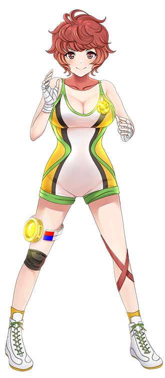 1girl bandaged_hand breasts chojo:_crypto_girls_arena cleavage full_body official_art shoes smile solo transparent_background yatsui_misaki