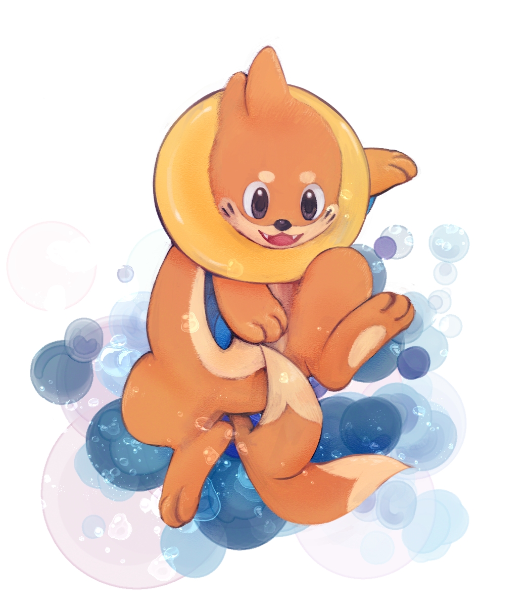 animal_focus brown_eyes bubble buizel buizelbuibui commentary_request fangs full_body gen_4_pokemon looking_ahead nintendo no_humans open_mouth pokemon pokemon_(creature) solo forked_tail whiskers white_background
