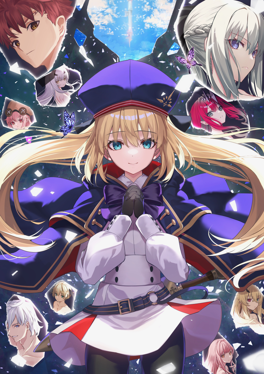 2boys 6+girls artoria_caster_(fate) artoria_caster_(second_ascension)_(fate) artoria_pendragon_(fate) baobhan_sith_(fate) barghest_(fate) belt beret black_gloves black_pantyhose blonde_hair blue_cape blue_hat blush braid breasts bug butterfly buttons cape cnoc_na_riabh_(fate) double-breasted dress emiya_shirou fate/grand_order fate_(series) gareth_(fate) gloves green_eyes habetrot_(fate) half_up_braid hat highres hood hooded_cape insect long_hair long_sleeves looking_at_viewer medb_(fate) melusine_(fate) morgan_le_fay_(fate) multicolored_cape multiple_boys multiple_girls neko_daruma pantyhose percival_(fate) red_cape senji_muramasa_(fate) small_breasts smile thighs twintails white_dress