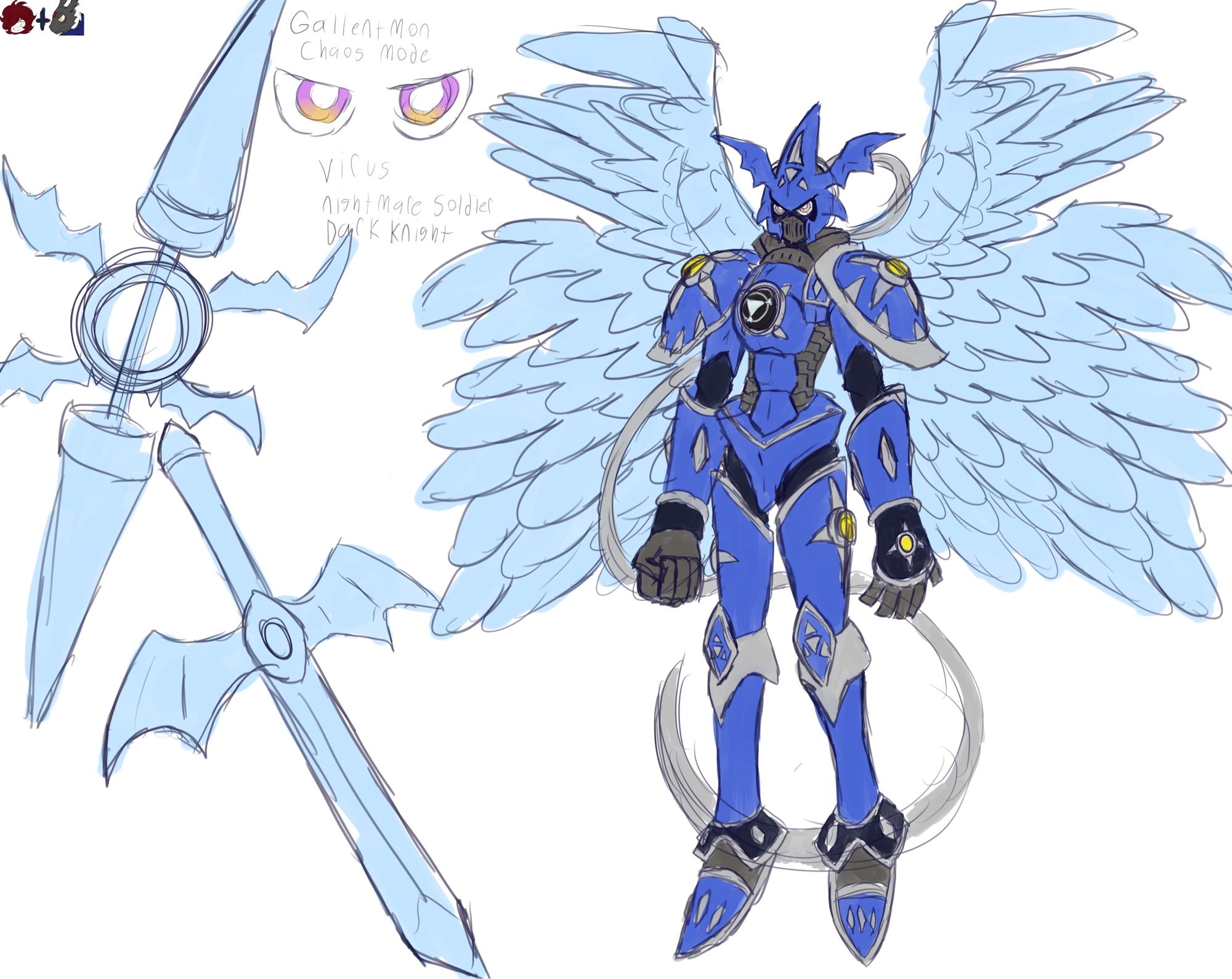 armor chaosdukemon digimon digimon_(creature) digital_hazard dukemon_chaos_mode full_armor highres lance polearm solo weapon wings