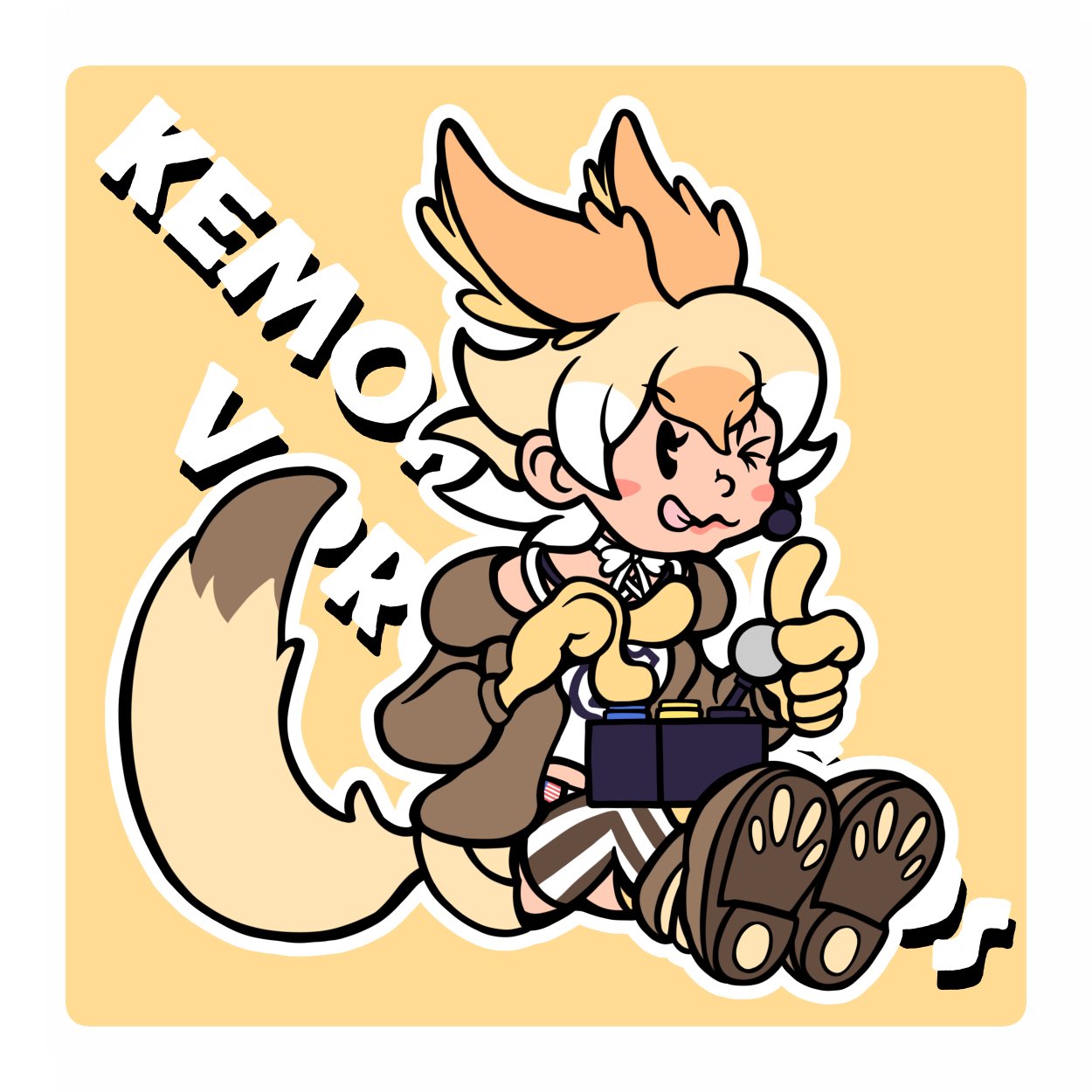 1girl animal_ears coyote_(kemono_friends) extra_ears highres kemono_friends kemono_friends_v_project looking_at_viewer r1chardroe simple_background solo tail virtual_youtuber yellow_background