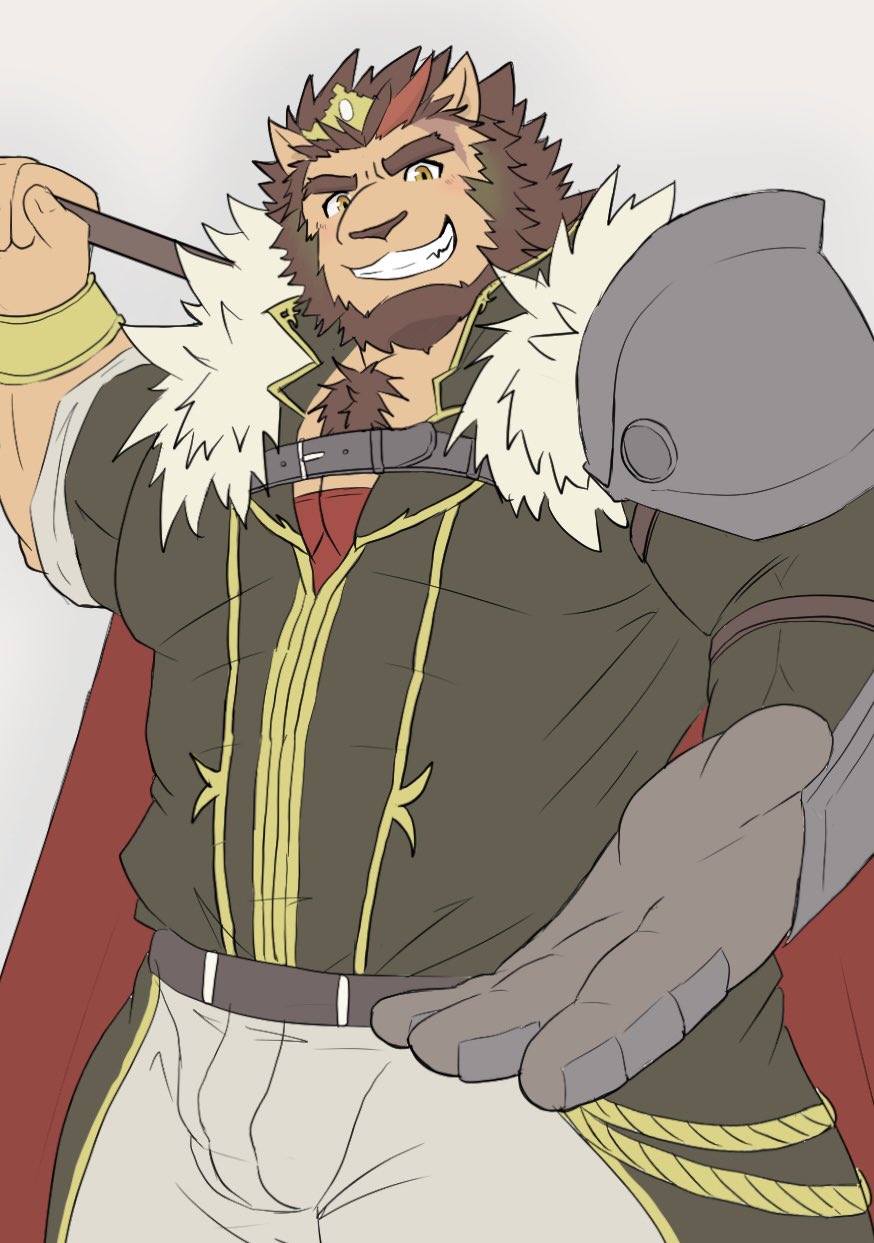 &{ID:9938798 CreatedAt:Sun Apr 21 16:30:21 -0500 2024 Score:0 Width:874 Height:1243 MD5:ffeaf7fe52f6419f4693d5763e22709a Directory:ff/ea Image:ffeaf7fe52f6419f4693d5763e22709a.jpg Rating:general Source:https://twitter.com/nikukyu299paw/status/1776645205044920499 Change:1713735021 Owner:danbooru CreatorID:6498 ParentID:0 Sample:0 PreviewHeight:350 PreviewWidth:246 Tags:1boy animal_ears armor bara beard brown_hair cape chest_tuft crave_saga crown facial_hair fur_trim furry grin highres holding holding_weapon karaha_(crave_saga) lion_boy lion_ears male_focus multicolored_hair muscular muscular_male nikukyu299paw red_hair short_hair shoulder_armor simple_background smile solo streaked_hair thick_eyebrows weapon Title: HasNotes:false HasComments:false FileURL:https://img2.gelbooru.com/images/ff/ea/ffeaf7fe52f6419f4693d5763e22709a.jpg PreviewURL:https://gelbooru.com/thumbnails/ff/ea/thumbnail_ffeaf7fe52f6419f4693d5763e22709a.jpg SampleURL: SampleHeight:0 SampleWidth:0 Status:active PostLocked:0 HasChildren:false IsVideo:false DisplayDate:21.04.2024 16:30}