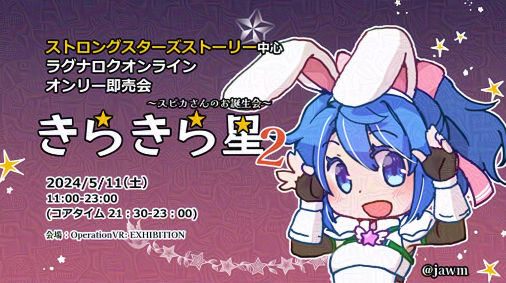 adversarial_noise animal_ears armor armored_gloves blue_eyes blue_hair bow breastplate chibi fake_animal_ears fingerless_gloves gloves hair_bow jawm pink_bow pink_star ponytail rabbit_ears rabbit_pose ragnarok_online shoulder_armor spica_parfait star_(sky) star_(symbol) twitter_username