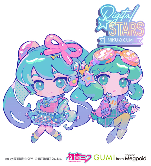 2girls blue_eyes blue_hair blush_stickers boots bow brooch character_name chibi closed_mouth collared_jacket copyright_notice digital_stars digital_stars_gumi digital_stars_gumi_(2021) digital_stars_miku digital_stars_miku_(2021) frilled_skirt frills goggles goggles_on_head green_eyes green_hair green_skirt gumi hair_bow hair_ornament hair_ribbon hatsune_miku high_collar invisible_chair jacket jewelry logo long_hair looking_at_viewer mawarusanso multiple_girls official_art open_clothes open_jacket open_mouth orange-framed_eyewear orange-tinted_eyewear orange_jacket pantyhose pink_ribbon pink_shirt portrait ribbon round_eyewear second-party_source shirt short_hair shorts shorts_under_skirt simple_background sitting skirt smile sound_wave star_(symbol) star_brooch star_hair_ornament tinted_eyewear twintails vocaloid white_background white_shirt yellow_boots yellow_bow yellow_pantyhose