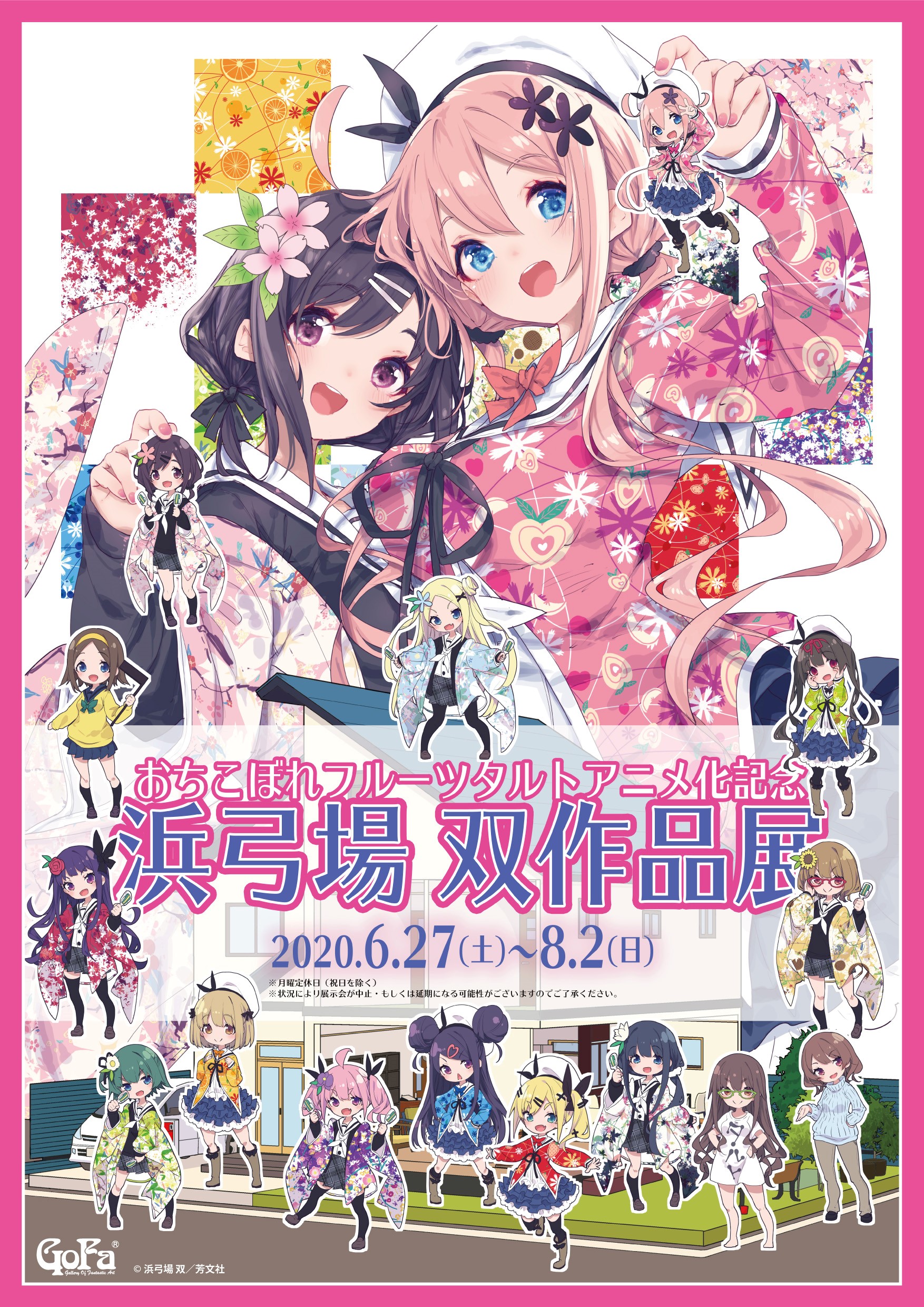 2girls :d absurdres ahoge black_flower black_hair black_scrunchie black_sweater blonde_hair blue_coat blue_eyes blue_jacket blue_skirt blue_sweater border breasts brown_coat brown_eyes brown_hair character_cutout character_request check_character cherry_blossoms coat creator_connection crossover floral_print flower frilled_skirt frills glasses green-framed_eyewear green_coat green_hair green_jacket grey_skirt hair_flower hair_ornament hair_scrunchie hamayumiba_sou hana_n._fountainstand hanayamata happi highres holding jacket japanese_clothes kajino_hoho large_breasts long_hair looking_at_viewer low_twintails maehara_nina midori_hemo miniskirt multiple_girls nishimikado_tami nukui_hayu ochikobore_fruit_tart open_mouth orange_jacket outline pink_border pink_coat pink_eyes pink_flower pink_hair pink_jacket plaid_clothes plaid_skirt pleated_skirt poster_(medium) purple_coat purple_eyes purple_hair red_eyes red_jacket sailor_collar sakura_ino sasame_yaya school_uniform scrunchie sekino_chiko sekino_roko sekiya_naru serafuku shirt skirt smile sweater t-shirt teeth tokiwa_machi tokiwa_sari translation_request turtleneck turtleneck_sweater twintails upper_teeth_only white_coat white_outline white_sailor_collar white_shirt yellow_sweater