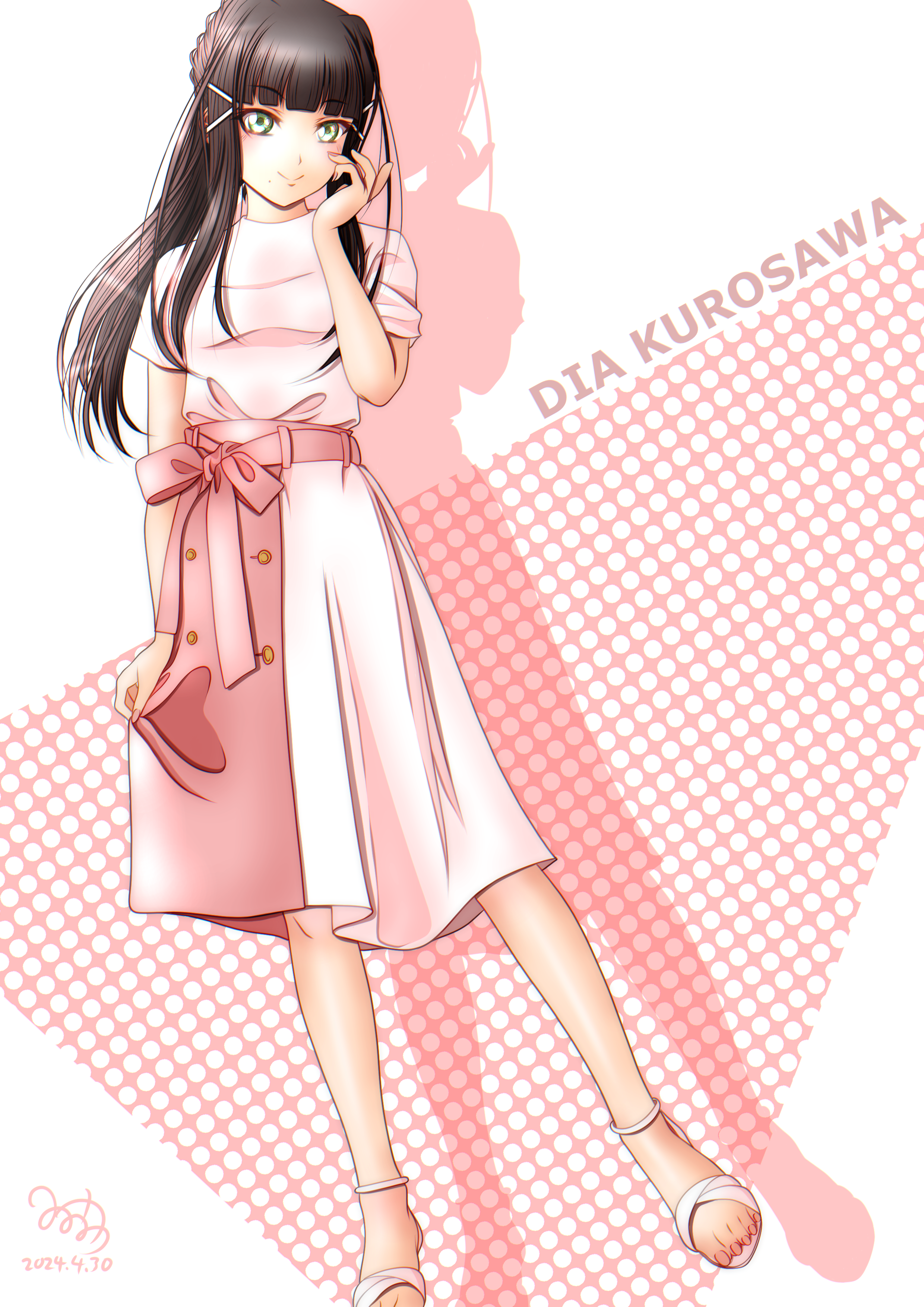 1girl absurdres aqua_eyes brown_hair full_body highres kurosawa_dia long_hair looking_at_viewer love_live! love_live!_sunshine!! minami_saan smile solo