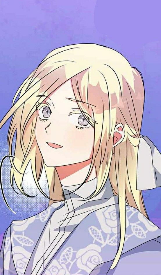 1girl blonde_hair blondina_ryun_ates blush long_hair looking_at_viewer my_gently_baised_beast open_mouth purple_background shirt solo very_long_hair white_eyes white_shirt