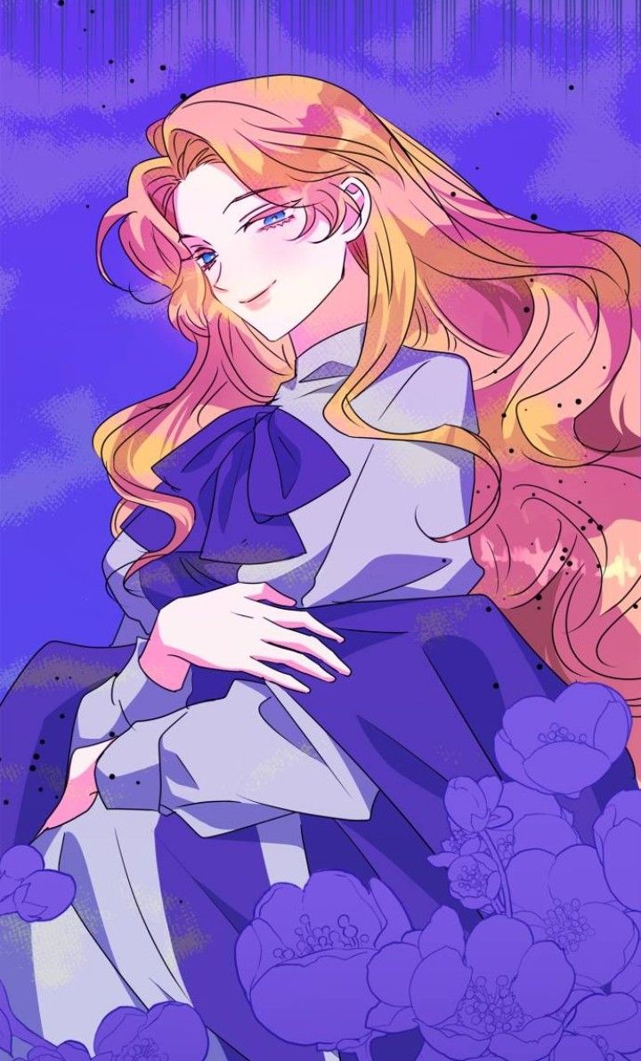 1girl adellai_ryun_ates blonde_hair blue_eyes blush flower long_hair looking_at_viewer my_gently_baised_beast purple_ribbon ribbon shirt smile very_long_hair white_shirt