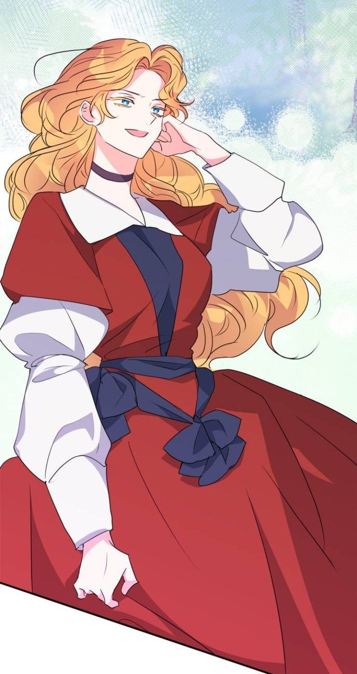 1girl adellai_ryun_ates blonde_hair blue_eyes dress hand_up highres long_hair my_gently_baised_beast open_mouth red_dress very_long_hair