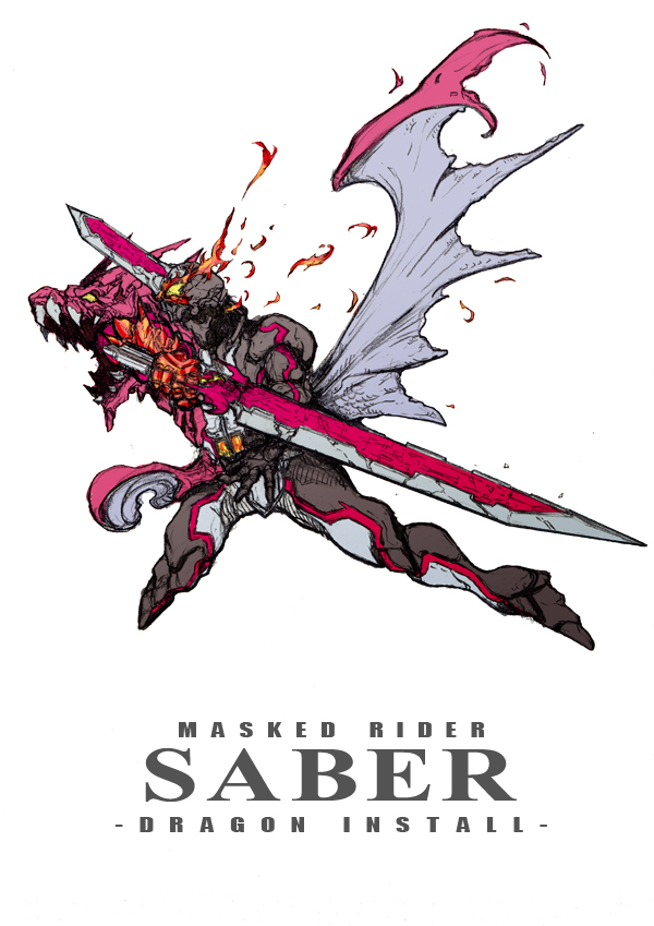 1boy armor asymmetrical_armor brave_dragon character_name dragon dragon_horns english_text fire gloves glowing glowing_eyes helmet holding holding_sword holding_weapon horns kaenken_rekka kamen_rider kamen_rider_saber kamen_rider_saber_(series) knight male_focus rider_belt solo sword tokusatsu weapon wonder_ride_book zakkizaki